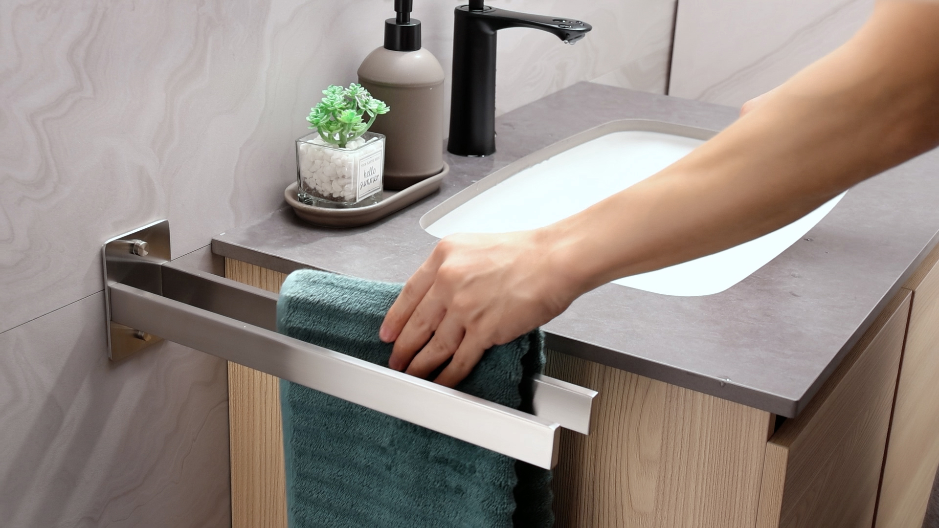 Schluss mit chaotischen Handtüchern! Dieser verstellbare Handtuchhalter aus gebürstetem Edelstahl bringt Ordnung in dein Bad oder Küche. Das geniale Teleskop-Design lässt sich von 22,8 cm bis 38,3 cm verstellen - passt also wirklich überall hin!