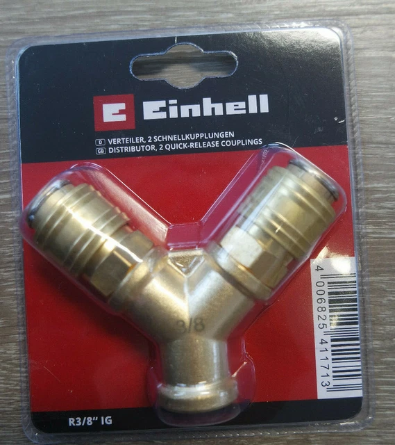 Doppelt nutzen, halbe Arbeit! Dieser robuste Verteiler aus Messing lässt dich zwei Druckluftgeräte gleichzeitig an deinem Kompressor betreiben. Mit 2 Schnellkupplungen und R 3/8\ Innengewinde - passt perfekt zu den meisten Kompressoren. Hochwertige Verarbeitung für lange Haltbarkeit. Nie wieder ständiges Umstecken zwischen Pistole, Blaspistole und anderen Tools. Ein echtes Upgrade für jede Werkstatt - ob Hobby oder Profi!