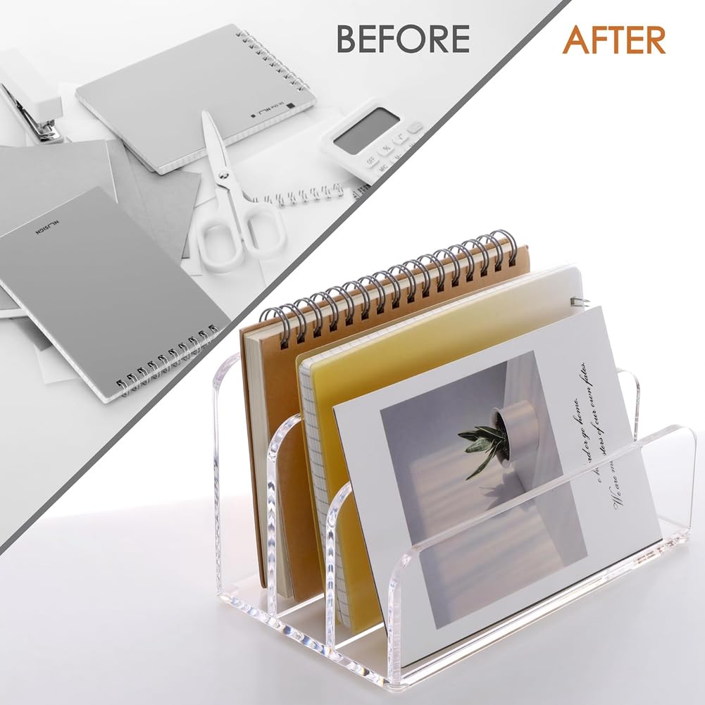 Endlich Ordnung auf dem Schreibtisch! Dieser NISHZHU Aktensortierer aus Acryl hält deine Papiere, Briefe und Dokumente perfekt organisiert. Mit 3 verschiedenen hohen Fächern findest du alles sofort - ob Zeitschriften, Ordner, Bücher oder dein Tablet. Das transparente Design sieht nicht nur modern aus, sondern du siehst auch sofort, was wo liegt. Aus stabilem, kratzfestem Acryl ist der Sortierer langlebig und robust. Perfekt fürs Homeoffice, Büro oder für Schüler und Studenten. Mach Schluss mit dem Papierchaos und finde alles blitzschnell wieder. Ein echter Game-Changer für jeden, der viel mit Dokumenten arbeitet!