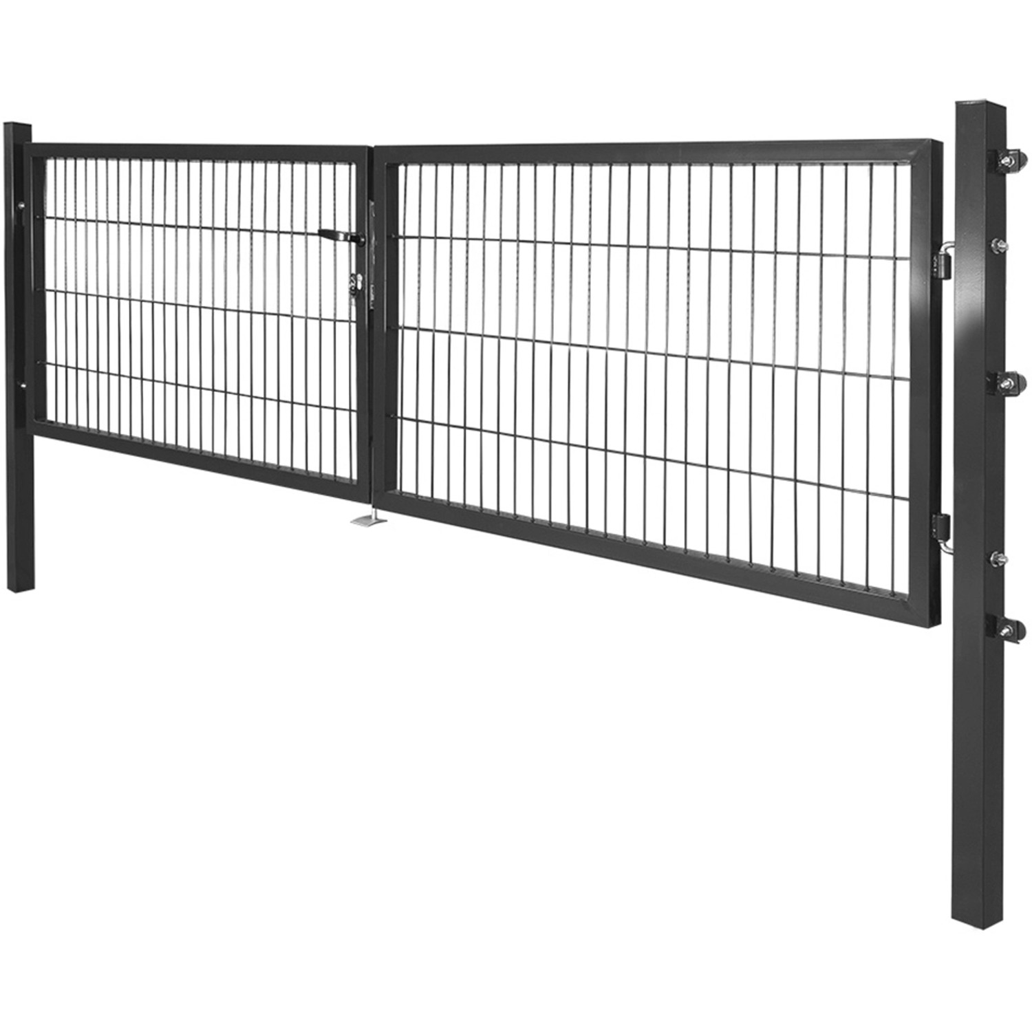 Sicherheit und Stil für dein Zuhause! Dieses massive Doppeltor in 400cm Breite und 160cm Höhe schützt dein Grundstück zuverlässig. In Anthrazit RAL 7016 pulverbeschichtet, ist es absolut UV- und witterungsbeständig. Die doppelte Verzinkung schützt vor Rost - das Tor hält ewig! Im Komplettset inklusive Torpfosten zum Einbetonieren und Zylinderschloss mit 3 Schlüsseln. Die Öffnungsrichtung der Flügel lässt sich flexibel einstellen. Perfekt kombiniert mit allen gängigen Stabmatten-Zaunsystemen. Ein echter Blickfang, der nicht nur gut aussieht, sondern auch maximalen Schutz bietet. Einfach montieren und jahrelang Freude an deinem neuen Gartentor haben. Ob für Einfamilienhaus, Villa oder Gewerbe - dieses Tor macht immer eine gute Figur!