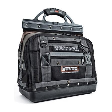 Ordnung im Werkzeug-Chaos? Die Veto Pro Pac TP-XL Werkzeugtasche macht's möglich! Mit stolzen 30 verschiedenen Taschen und Fächern bietet sie genug Platz für all deine Werkzeuge, Messgeräte und Kleinteile. Die Abmessungen von 16,5cm Breite, 25,4cm Länge und 33cm Höhe machen sie zur perfekten mittelgroßen Tasche für Service-Einsätze und Installationen. Besondere Features: Eine rückseitige Tabletttasche für dein Tablet, magnetischer Schraubfänger, Aufhängehaken, Quick Clip Metallbandhalter und spezielle Taschen für Bits und Verlängerungen. Der übergeformte Gummigriff liegt angenehm in der Hand, während der Polypropylen-Kunststoffboden vor Feuchtigkeit und Abrieb schützt. Aus robustem 12000 Polyester gefertigt, hält diese Tasche auch bei täglichem Einsatz problemlos stand. Der gepolsterte Schultergurt macht den Transport besonders bequem. Ob du Elektriker, Handwerker oder Heimwerker bist - diese professionelle Werkzeugtasche hilft dir, organisiert und effizient zu arbeiten. Ein echter Game-Changer für deine Werkzeugausrüstung!