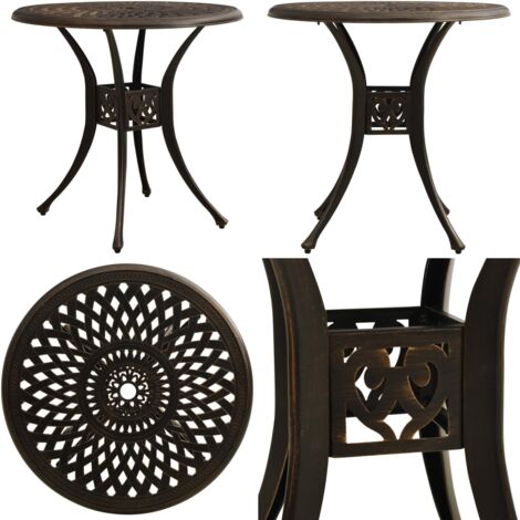 Perfekt für gemütliche Stunden im Freien! Dieses 3-teilige Bistro-Set von vidaXL besteht aus 2 bequemen Stühlen und einem runden Tisch - alles aus witterungsbeständigem Aluminiumguss in schicker Bronzefarbe. Die hohen Rückenlehnen und ergonomischen Armlehnen sorgen für maximalen Komfort.
