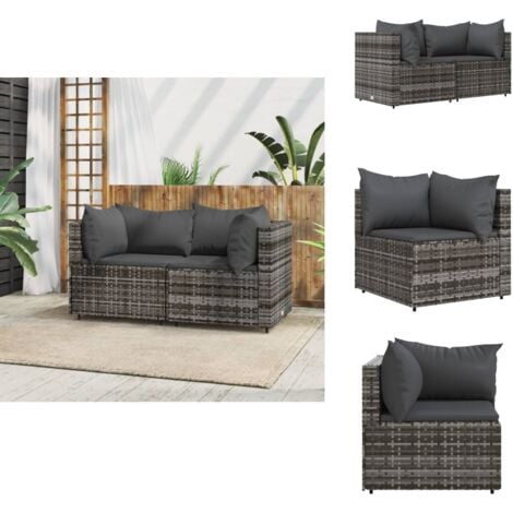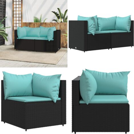 • VidaXL Garten Ecksofa 2-teilig Schwarz - Poly Rattan Gartensofa Mit Kissen