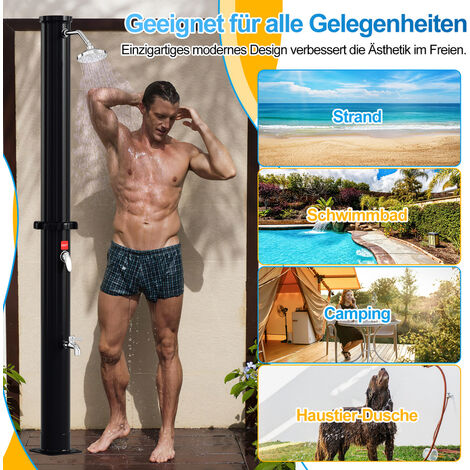 Was gibt es Schöneres, als an einem heißen Sommertag eine erfrischende Dusche im Freien zu nehmen? Diese Gartendusche von vidaXL macht's möglich! Mit einer Gesamthöhe von 220 cm und einer braunen Bodenplatte aus hochwertigem WPC-Material fügt sie sich perfekt in deinen Garten oder Poolbereich ein. Das Besondere: Sie verfügt über beide eine Kopfdusche mit 15 cm Durchmesser als auch eine Handbrause mit 1,5 m langem, flexiblen Schlauch. So kannst du je nach Bedarf zwischen angenehmem Sprühregen und gezieltem Abbrausen wechseln. Der praktische Handbrausehalter dient gleichzeitig als Ablage für Handtücher oder Duschzeug. Aus Aluminium und Edelstahl gefertigt, ist die Dusche nicht nur witterungsbeständig, sondern auch besonders langlebig. Die korrosionsbeständige Bodenplatte mit gebürstetem Edelstahl-Rahmen bietet sicheren Stand und höchste Hygiene. Perfekt also nach dem Schwimmen, nach der Gartenarbeit oder einfach für eine schnelle Erfrischung an warmen Tagen. Mit den vorgebohrten Befestigungslöchern und dem mitgelieferten Montagezubehör ist die Installation ein Kinderspiel. Verwandle deinen Garten in eine private Wellness-Oase!
