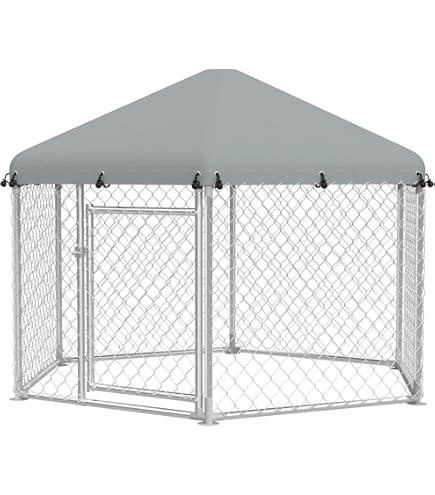 Riesiger Outdoor-Hundezwinger für deine Tiere! Maße: 4x4x2,5m (LxBxH) - plenty Platz zum Spielen und Toben. Aus robustem, verzinktem Stahl - wetterfest und langlebig. Mit schützendem PE-Dach gegen Sonne, Regen und Schnee. Abschließbare Tür (52x190cm) schützt vor Raubtieren. Nicht nur für Hunde - auch perfekt für Hühner, Kaninchen, Enten und andere Kleintiere. Das Maschendraht-Design sorgt für gute Belüftung. Einfacher Zusammenbau - alles was du brauchst ist dabei. Deine Tiere haben sicheren Auslauf im Freien und du hast ein gutes Gefühl. Perfekte Lösung für Tierbesitzer, die ihren Lieblingen Freilauf ermöglichen wollen!