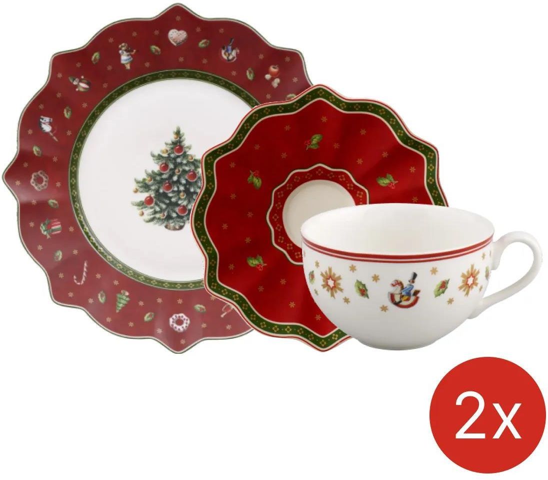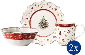 Oh man, dieses Weihnachtsgeschirr von Villeroy & Boch ist einfach nur niedlich! Das Toy's Delight Set mit dem süßen Lokomotiv-Design bringt sofort weihnachtliche Stimmung auf den Frühstückstisch. Das 6-teilige Set enthält alles was du brauchst: 2 Teller, 2 Schalen und 2 bauchige Henkelbecher - perfekt für ein Paar oder wenn mal Besuch kommt. Aus hochwertigem Premium-Porzellan gefertigt, ist das Geschirr nicht nur super schön anzusehen, sondern auch praktisch im Alltag. Es passt perfekt zu den anderen Kollektions von Toy's Delight und Toy's Fantasy - da kannst du nach und nach deine ganze Weihnachtstafel damit ausstatten. Die Reinigung ist denkbar einfach: Einfach mit nem feuchten Tuch abwischen oder in die Spülmaschine stellen. Ob fürs tägliche Weihnachtsfrühstück mit der Familie oder für festliche Diners - mit diesem Geschirr wird jede Mahlzeit zu nem besonderen Erlebnis. Auch als Geschenk ideal für Weihnachtsfans oder Sammler von festlichem Geschirr! Einfach aufdecken und sich an der gemütlichen Atmosphäre erfreuen - so schmeckt's gleich doppelt so gut!