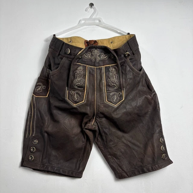 Servus! Diese Edelnice Lederhose Vincent ist was für echte Trachtenfans! Aus super weichem Wildbockleder in nem schicken Rehbraun - sitzt wie angegossen und wird mit der Zeit noch bequemer. Die Stickerei in Dunkelbraun und Beige ist richtig aufwendig gemacht und sieht total edel aus. Besonders cool: Die Verzierung an den Beinenden umrahmt die Trachtenknöpfe. Im Lieferumfang ist sogar ein passender Gürtel mit goldener Schnalle und Bayern-Emblem dabei - größenverstellbar natürlich! Mit zwei Vordertaschen, Gesäßtasche und Messertasche hast du alles, was du brauchst. Als kurze Lederhose mit ca. 50-52cm Länge (Größe 52) perfekt fürs Oktoberfest, Volksfeste oder Hochzeiten. Kombinierbar mit Trachtenhemd und Haferlschuhen - da machtst du auf jedem Fest eine gute Figur! Qualität, die man sieht und spürt - made for Gemütlichkeit!