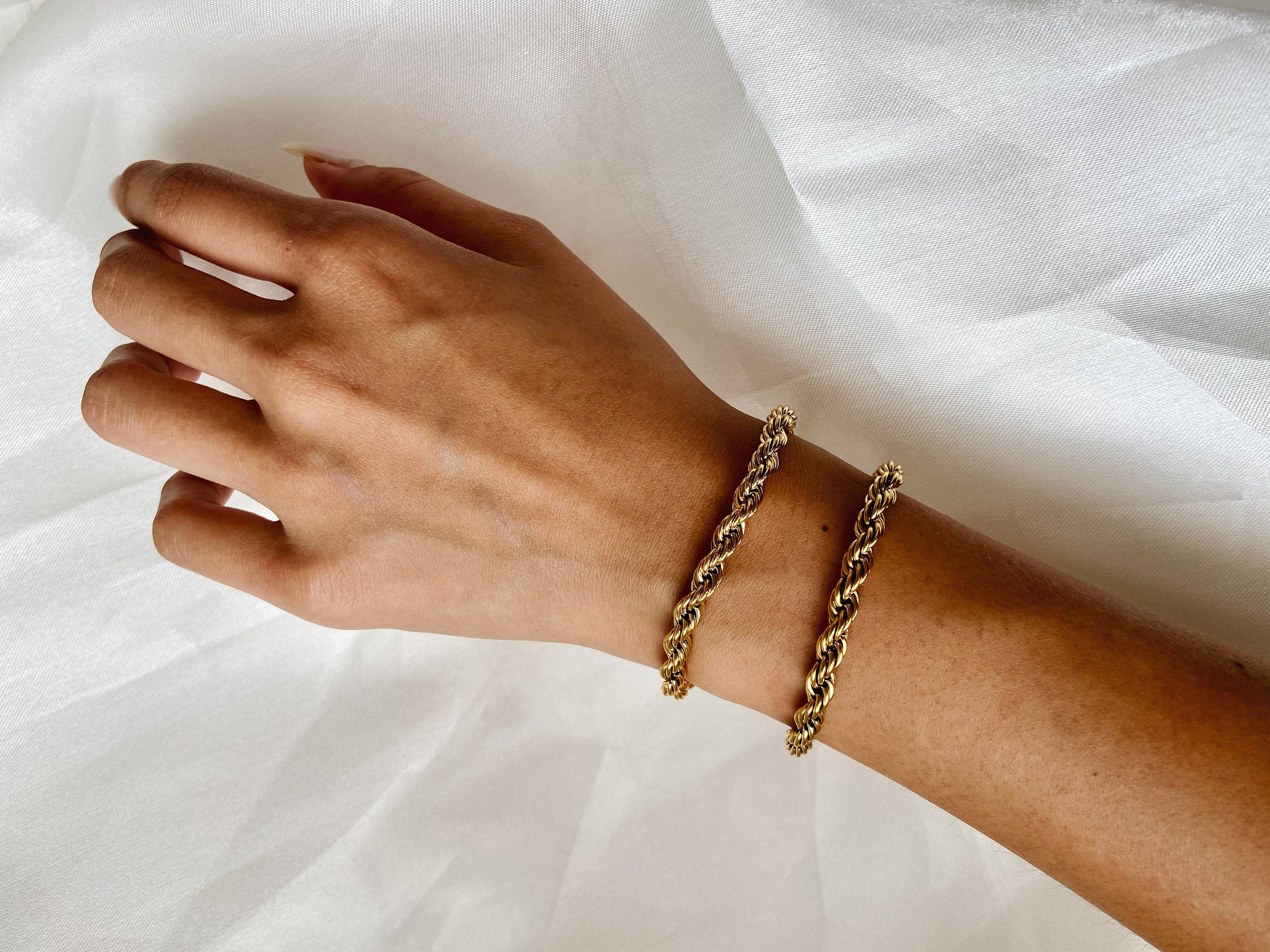 Suchst du ein Armband, das zu allem passt? Dieses Purelei Vintage Armband ist perfekt! Fein gedreht, nur 2,3mm schmal und super leicht (2,3g) - merkst du kaum am Handgelenk! Verstellbar von 16-19cm, passt also wirklich jedem. Aus hochwertigem Edelstahl, erhältlich in Gold (14K vergoldet), Roségold (18K) oder Silber. Wasserdicht, also kannst du es immer tragen. Sieht alleine toll aus oder kombiniert mit anderen Armbändern. Zeitloses Design für jeden Tag - hol dir den perfekten Begleiter!