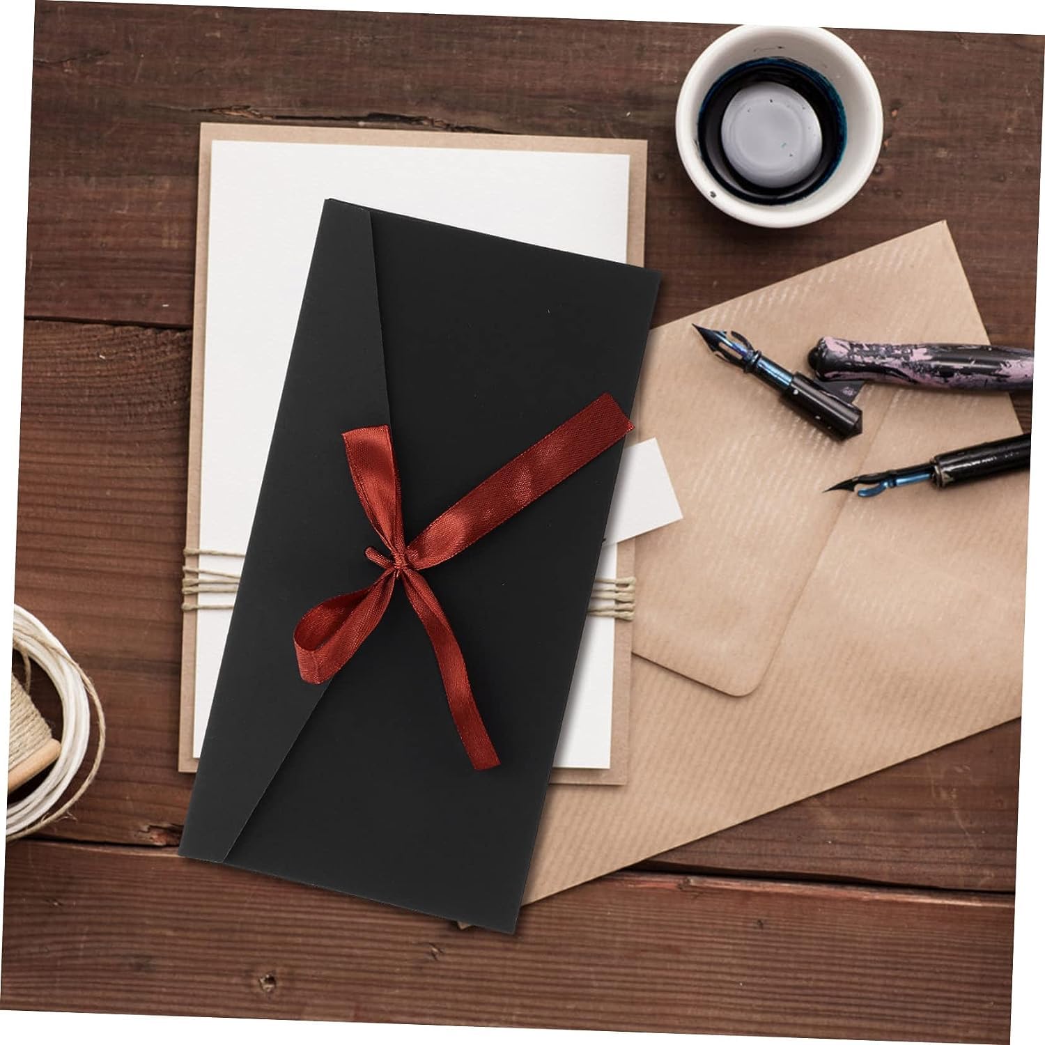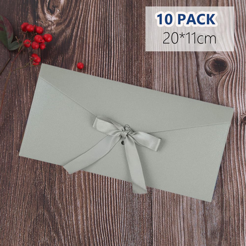 Kreative Seelen, diese 10 Vintage-Umschläge sind einfach bezaubernd! Aus stabilem Kraftpapier in 22x11 cm Größe gefertigt, sind sie perfekt für besondere Anlässe. Jeder Umschlag hat ein süßes Band zum Verschließen - kein Kleber nötig! Die retro Farben Schwarz, Rot, Dunkelblau und Kraftbraun sehen einfach klasse aus und passen zu Hochzeiten, Geburtstagen, Weihnachten oder jeder anderen Feier. Das Papier ist dick und reißfest, schützt deine Karten also super. Ob für Einladungen, Grußkarten oder als Geschenkverpackung - diese Umschläge machen jede Karte zum Hingucker. Du kannst sie sogar wiederverwenden! Mit 10 Stück im Set hast du genug für mehrere Anlässe. Einfach beschriften, das Band zubinden und Freude verschenken!