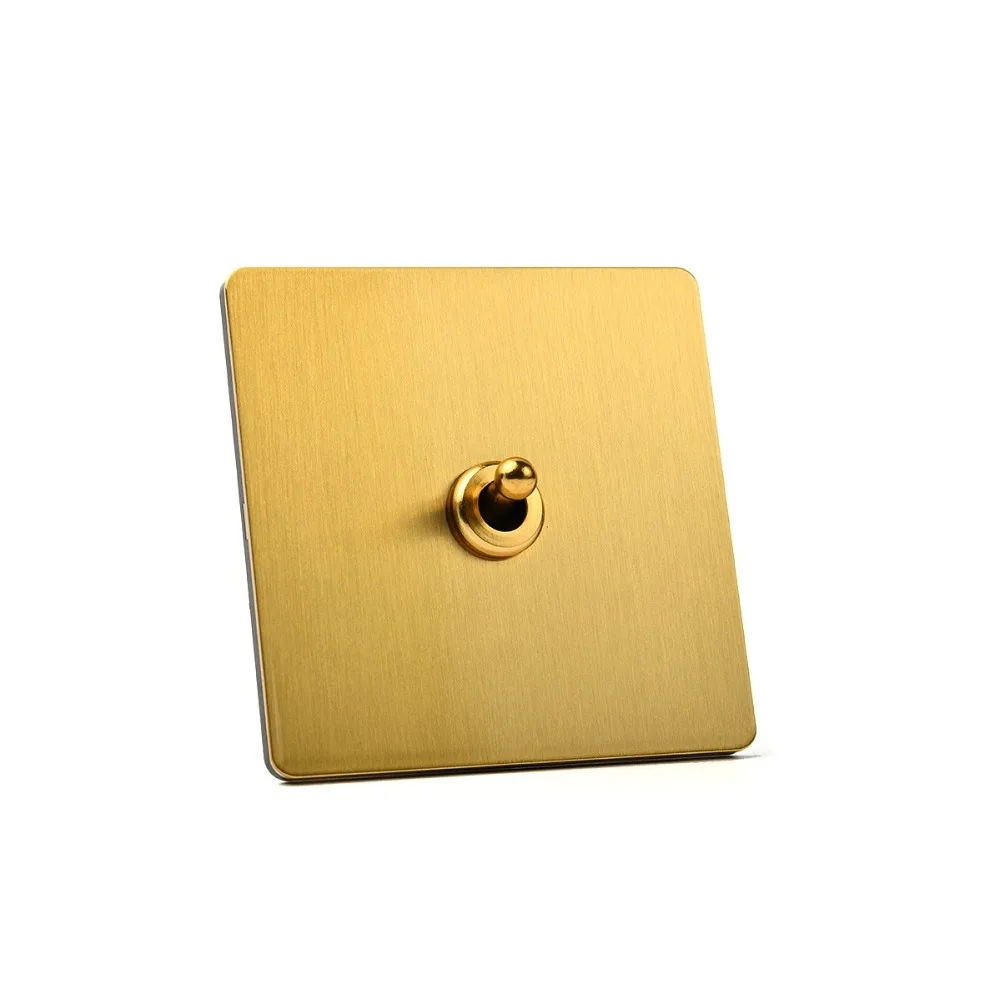 Bring nostalgischen Charme in deine vier Wände! Dieser wunderschöne Kippschalter aus massivem Schwarzwalnussholz verleiht jedem Raum sofort gemütlichen Landhaus-Flair. Jedes Panel ist ein Unikat - die natürliche Maserung des Holzes kommt perfekt zur Geltung und kombiniert mit dem Messing-Einsatz entsteht ein richtig edler Look. \\n\\nMit den Maßen 86 x 88 mm passt der Schalter in die meisten Standard-Unterputzdosen. Die 250V Spannung und 50 Hz Frequenz machen ihn perfekt für den Einsatz in Schlafzimmer, Bad oder Wohnbereich. Einfach die mitgelieferten goldfarbenen Schrauben verwenden und schon ist der Hingucker montiert! \\n\\nDas Besondere: Das Messing-Innenleben ist nicht-leitend und die isolierte Kunststoffbasis sorgt für absolute Sicherheit. So hast du nicht nur ein schönes, sondern auch ein sicheres Stück Handwerkskunst an der Wand. \\n\\nDie Oberfläche ist fein poliert und fühlt sich angenehm glatt an - ein echter Genuss für die Finger! Der Schalter liegt gut in der Hand und das typische Kipp-Geräusch erinnert an Omas altes Landhaus. \\n\\nPerfekt für alle, die ihrem Zuhause etwas Persönlichkeit verleihen wollen. Ob im komplett renovierten Altbau oder als stylischer Akzent im modernen Loft - dieser Schalter macht einfach überall eine gute Figur!
