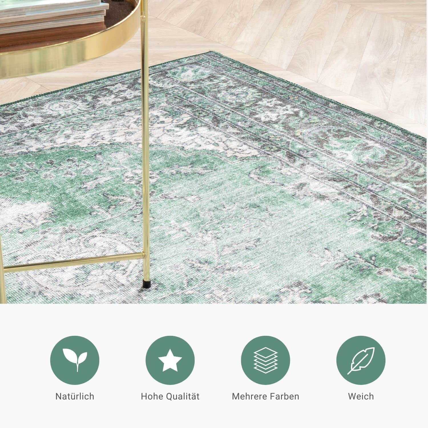 Wow, dieser FRAAI Vintage Teppich ist ein echter Hingucker! Im schönen Blau-Grün-Ton mit klassischem Medaillon-Muster, inspiriert von echten Orientteppichen. Hergestellt aus Baumwolle mit weicher Chenille-Oberfläche - super gemütlich für die Füße! Passt perfekt ins Wohnzimmer, Esszimmer oder Schlafzimmer. Ob industriell, ländlich oder klassisch - dieser Teppich macht überall was her. Hochwertige Qualität zum fairen Preis. Hol dir ein Stück Orient nach Hause!