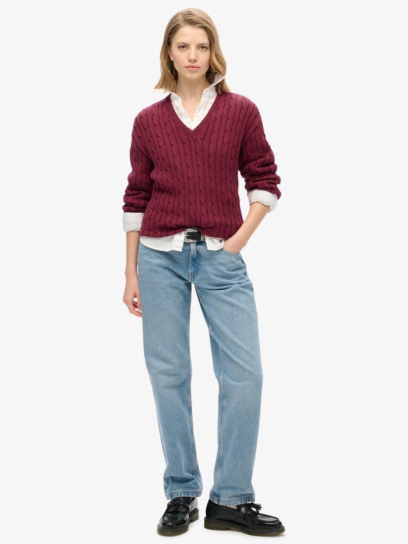 Superdry Damen Kapuzenpullover Vintage - V-Ausschnitt Mit Zopfmuster In Lässiger Passform