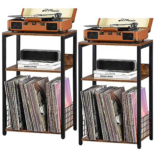 3-stöckiger Schallplattenständer Vintage - Vinyl Regal Mit Stauraum Für 120 Alben