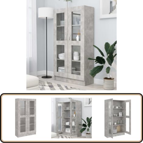 Edler Vitrinenschrank der jedes Wohnzimmer aufwertet! Maße: 82,5x30,5x150 cm (BxTxH) - passt auch in kleinere Räume. In modernem Betongrau mit Hochglanz-Oberfläche. Mit 4 geräumigen Fächern und 2 Glastüren - perfekt für Bücher, Deko, Sammlerstücke oder Multimedia-Geräte. Aus stabilem Holzwerkstoff - robust und langlebig. Einfach zu reinigen mit feuchtem Tuch. Achtung: Muss zur Sicherheit an der Wand befestigt werden (Haltevorrichtung inklusive, Schrauben und Dübel nicht enthalten). Zusammenbau erforderlich. Ein echter Hingucker der Stauraum und Stil optimal vereint!