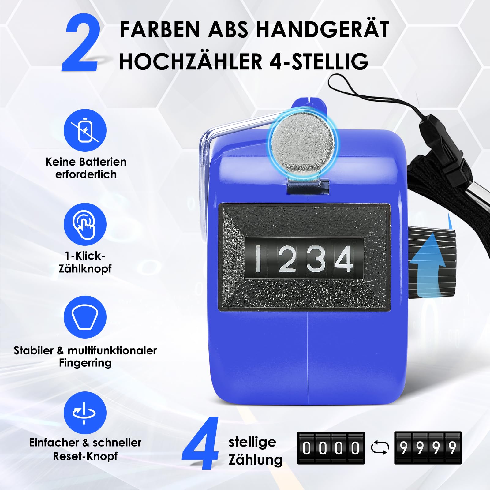 Einfacher geht's nicht! Dieser praktische Handzähler aus Metall ist dein perfekter Begleiter für alle Zählaufgaben. Ob beim Golf für deine Schläge, beim Sport für Punkte oder auf Events für Personen - einfach den Knopf drücken und der Counter zählt zuverlässig von 0 bis 9999. Das Beste: Er braucht keine Batterien! Der mechanische Zähler funktioniert immer, wenn du ihn brauchst. Mit Metallring zum Anhängen an den Finger oder Gürtel - so hast du ihn immer griffbereit. Die großen Zahlen auf schwarzem Hintergrund sind super gut abzulesen. Und wenn du von vorne beginnen willst, drehst du einfach den Rücksetzknopf. Perfekt für Lehrer, Trainer, Eventmanager oder einfach für den Hausgebrauch. Klein, robust und unkompliziert - so muss ein Zähler sein!