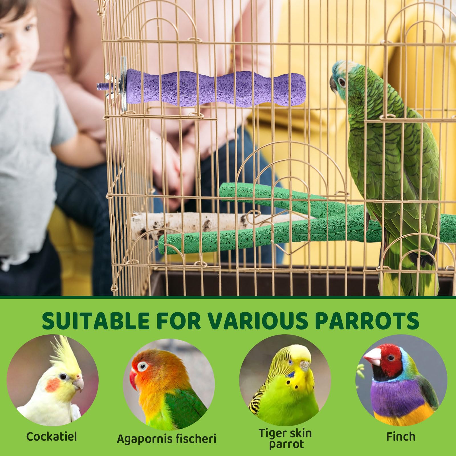 Deine Vögel werden diese Sitzstangen lieben! Das Set mit 3 verschiedenen Formen: Plattform, Stab und Ast - für Abwechslung im Käfig. Die raue Oberfläche schleift Schnäbel und Krallen auf natürliche Weise - gesund und praktisch! Rutschfeste Textur - deine Vögel stehen sicher und stabil! Aus festem Harzmaterial - robust und langlebig! Helle Farben ziehen die Aufmerksamkeit deiner Vögel auf sich! Einfach zu montieren - mit Flügelmuttern und Unterlegscheiben! Passt für Wellensittiche, Nymphensittiche und andere Kleintiere! Fördert natürliches Kletterverhalten und beugt Langeweile vor! Die grüne Plattform misst 11,5x6,5cm, rosa Stab 12,5cm, Ast 17cm - für jeden Vogel die richtige Größe! Mach den Käfig deines Vogels zum Spielparadies!