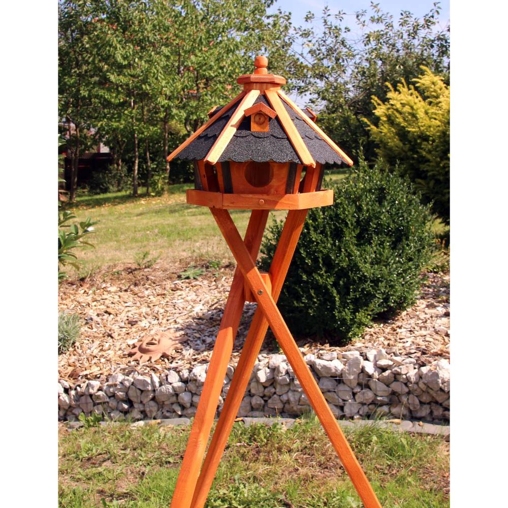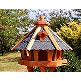 Ein gemütliches Zuhause für unsere gefiederten Freunde! Dieses wunderschöne Vogelhaus aus Holz wird in Handarbeit hergestellt und sieht mit seinen Holzschindeln am Dach einfach urig aus. Mit 49cm Dachdurchmesser und 33cm Höhe bietet es genug Platz für die Vogelfütterung. Das Besondere: Es hat kleine Gauben auf dem Dach und Einfluglöcher auf jeder Seite. Die Befüllung geht einfach - Dachspitze abnehmen und Futter in den Schacht füllen. Durch seitliche Schlitze rollt das Futter dann nach unten. Wichtig: Das Haus ist nur teilweise behandelt, daher am besten vor dem Aufstellen noch mit Holzschutzmittel behandeln. So hält es länger der Witterung stand. In rot/natur erhältlich, passt es perfekt in jeden Garten. Perfekt für die Winterfütterung - die Vögel werden's dir danken! Ein echter Hingucker für deinen Garten!
