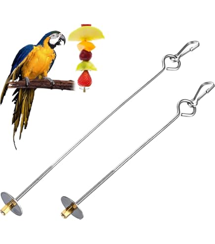 Oh, deine Vögel werden diese Spieße lieben! Aus hochwertigem Edelstahl 304 - rostfrei und super langlebig. Im Set mit drei Größen: 17,5cm, 22,5cm und 27,5cm. Perfekt für große Papageien genauso wie für kleine Wellensittiche. Einfach Obst oder Gemüse aufspießen, aufhängen und zuschauen, wie deine Vögel begeistert knabbern! Das metallische Gewinde hält alles sicher fest, nichts rutscht runter. Und das beste: Richtig einfach zu reinigen! Einfach abspülen oder mit nem feuchten Tuch abwischen. Super nicht nur als Futterstelle, sondern auch als Beschäftigungsspielzeug. Deine Vögel müssen sich ihr Futter erarbeiten - das macht Spaß und ist gut für sie. Einfach genial für alle Vogelhalter!