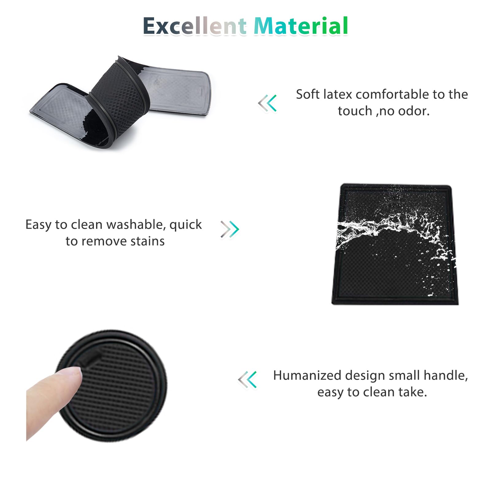 Die rutschfeste Oberfläche hält alles sicher an seinem Platz. Mit dem praktischen Laschengriff kannst du die Matten einfach zum Reinigen herausnehmen. Einfach mit Wasser und Seife abspülen - schon sehen sie wieder aus wie neu.