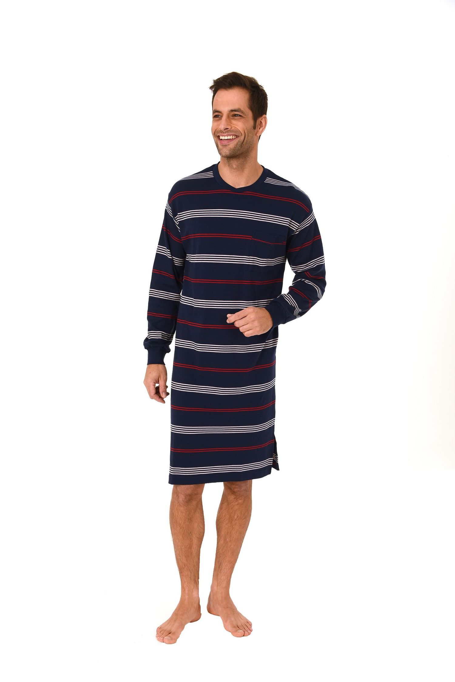 So gemütlich war Schlafen noch nie! Dieses Langarm-Nachthemd von Normann ist pure Entspannung für Herren. Mit stylischem Karo-Design und praktischem V-Ausschnitt. Aus weichem Single-Jersey - fühlt sich an wie eine Umarmung! Die Bündchen an den Ärmeln verhindern lästiges Verrutschen in der Nacht. Auch in Übergrößen erhältlich - für jeden die passende Größe. Nach OEKO-TEX Standard 100 zertifiziert - absolut schadstofffrei und hautverträglich. Einfach bei 60°C waschbar und trocknergeeignet. Seit 1903 steht Normann für Qualität in Nachtwäsche - made in Germany! Perfekt für kalte Nächte oder gemütliche Fernsehabende. Schenk dir selbst das ultimative Wohlfühl-Erlebnis oder mach einem lieben Menschen eine Freude! Einfach anziehen, zurücklehnen und den Komfort genießen.