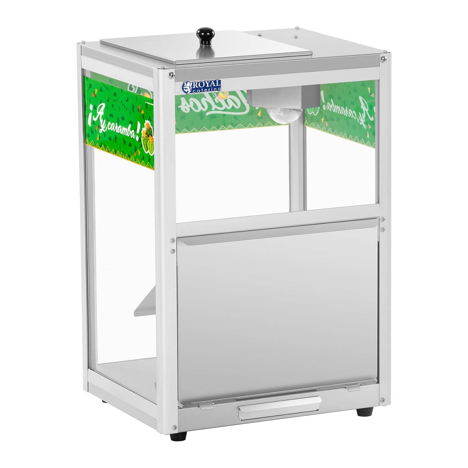 Alter, das Teil ist ja der Hammer für jede Party! Der Royal Catering Nacho-Wärmer hält deine Snacks perfekt warm und macht dabei noch was her. Mit 109 Watt Heizleistung und bis zu 65°C - da bleiben Nachos, Popcorn oder Erdnüsse immer knusprig. Das coole Feature: Die LED-RGB-Beleuchtung mit 16 Farben und Fernbedienung! Das Gehäuse aus Edelstahl ist pflegeleicht und robust. 40 Liter Fassungsvermögen für bis zu 4,5 kg Nachos - damit versorgst du locker 45 Gäste. Mit praktischer Auffangschublade für Krümel und inklusive Edelstahl-Schaufel. Perfekt für Veranstaltungen, Kinos oder einfach die nächste Fußball-Party zu Hause!