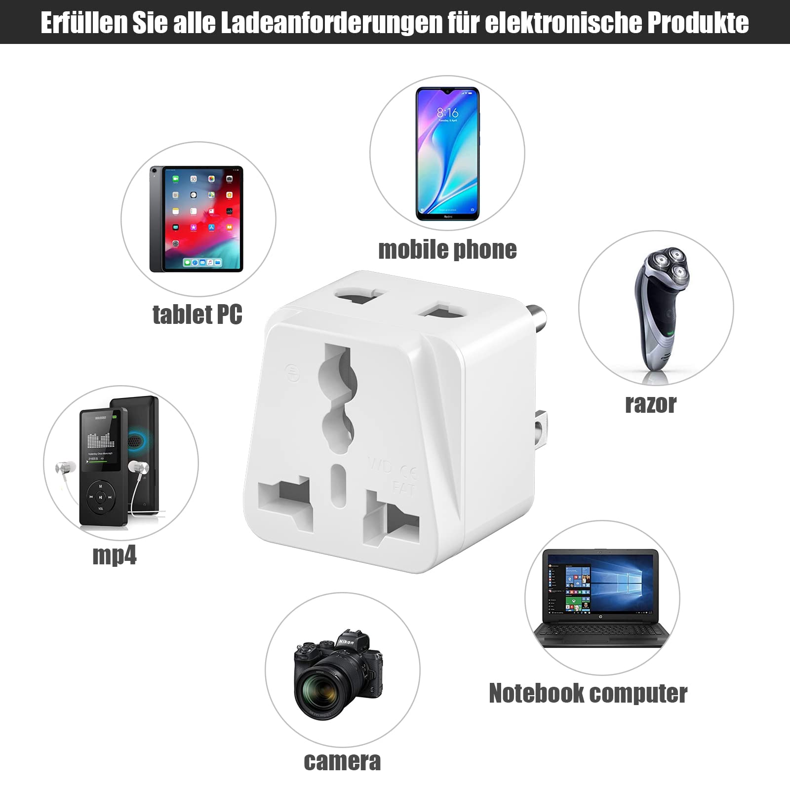Nie wieder Stecker-Chaos im Urlaub! Dieses 3er Set Universal-Adapter macht dich weltweit steckdosenfit. Egal ob du in USA, UK, China, Japan oder Australien unterwegs warst - diese Adapter passen in deutsche/europäische Steckdosen (Schuko). Super kompakt (nur 37x35x65 mm) und leicht - perfekt für die Reisetasche. Aber Achtung: Die Adapter wandeln keine Spannung! Sie passen nur die Steckerform an. Dafür haben sie aber wichtigen Überspannungsschutz und eine Sicherheitsverriegelung, damit neugierige Kinderfinger sicher sind. Aus feuerfestem PC-Material und Metall - richtig robust also. Ideal für Handy, Laptop, Kamera, Rasierer und alle möglichen Kleingeräte. Einfach zusammenstecken, rein in die Steckdose und schon kannst du laden. Mit drei Adaptern im Set hast du immer Ersatz parat oder kannst mehrere Geräte gleichzeitig betreiben. Stressfreies Reisen beginnt mit den richtigen Adaptern!