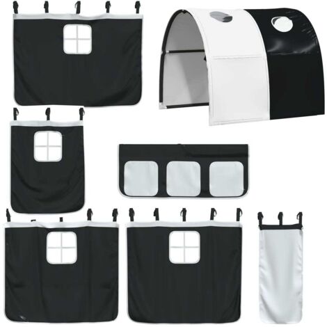 Wow, was für ein cooles Spielparadies fürs Kinderzimmer! Dieses SKM Vorhang-Set verwandelt jedes langweilige Hochbett in eine geheime Abenteuer-Basis. Enthalten sind nicht nur Vorhänge in verschiedenen Größen (100x75cm, 60x75cm, 34x75cm), sondern auch ein langer Tunnel (211x94cm) und ein richtiger Turm (190,5cm hoch)! Aus robustem 100% Polyester gefertigt, der nicht einläuft oder Falten wirft. Praktisch: Der Vorhang hat 3 Aufbewahrungstaschen für Bücher und Spielzeug. Die Raffhalter und Metallrohre sorgen für sicheren Halt. Dein Kind wird begeistert sein - ob zum Verstecken, Spielen oder einfach als gemütliche Rückzugsecke. Die weiß-schwarze Farbkombination passt in jedes Zimmer. Achtung: Hochbett und Rutsche sind nicht dabei, aber mit diesem Set wird jedes Bett zum absoluten Highlight! Perfekt für kleine Entdecker ab 3 Jahren.