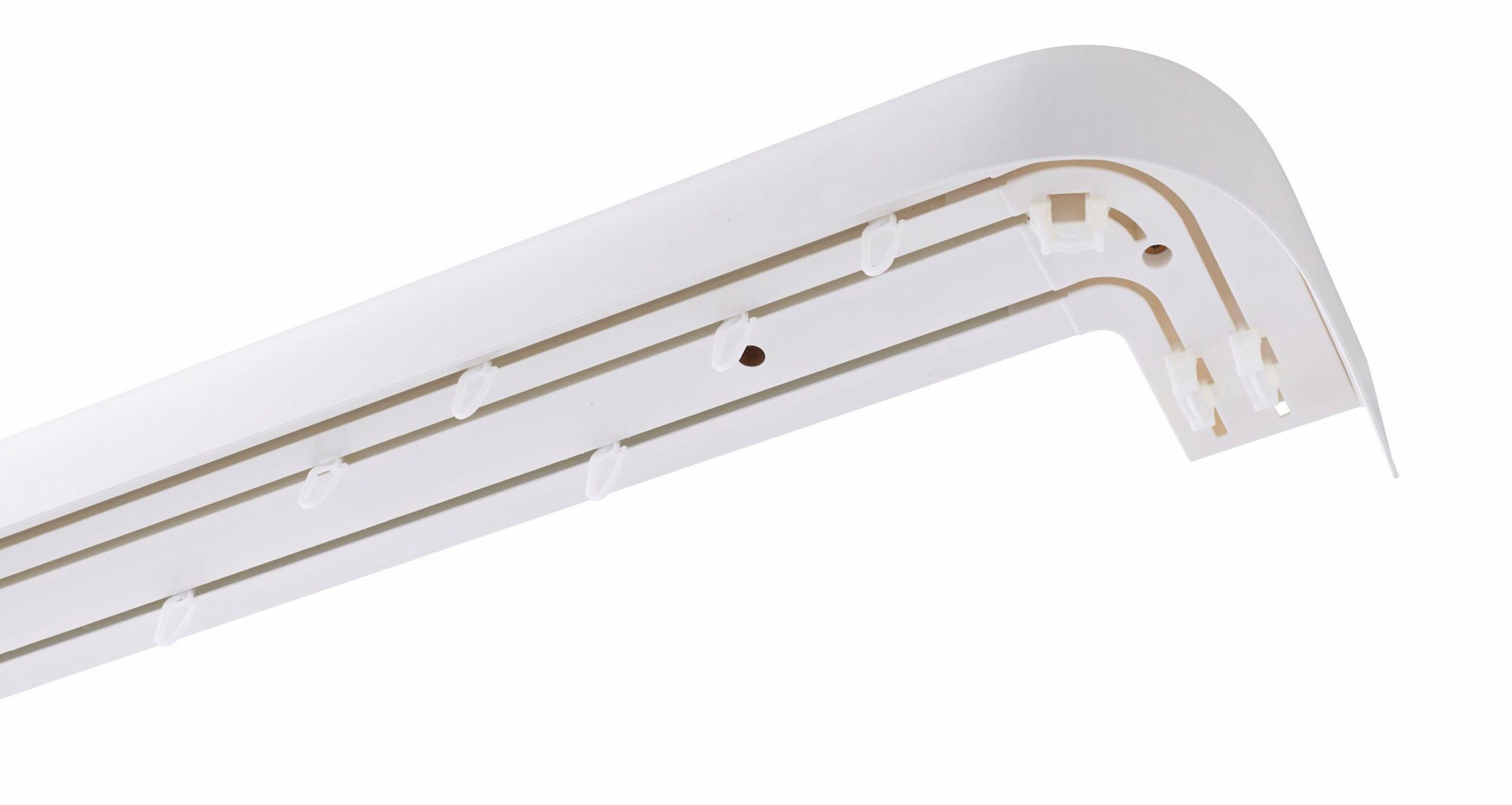 Mega praktisch - diese 3-läufige Vorhangschiene von Bestlivings macht deine Fensterdekoration zum Kinderspiel! Mit 330cm Gesamtlänge (aufgeteilt in 1x90cm und 2x120cm) passt sie auch für große Fensterfronten. Die weiße Kunststoff-Blende ist 5cm hoch und wird als komplettes Stück geliefert - du kannst sie aber bei Bedarf einfach kürzen. Alles was du für die Montage brauchst, ist dabei: Befestigungsmaterial mit Dübeln, Schrauben und Abdeckkappen, Seitendeckel und Verbinder. Die Innenlaufschiene nimmt alle handelsüblichen Gardinenrollen mit 8mm Durchmesser auf. Einfach an der Decke befestigen, Blende aufschieben und fertig! Perfekt für alle, die mehrere Vorhänge unabhängig voneinander bewegen wollen. Hergestellt in Europa, schadstoffgeprüft und REACH-konform - da kannst du sicher sein, dass du Qualität bekommst. Als deutscher Händler stehen wir dir bei Fragen jederzeit zur Verfügung. Ob für Wohnzimmer, Schlafzimmer oder Büro - diese Schiene sieht nicht nur gut aus, sondern ist auch super funktional und langlebig!