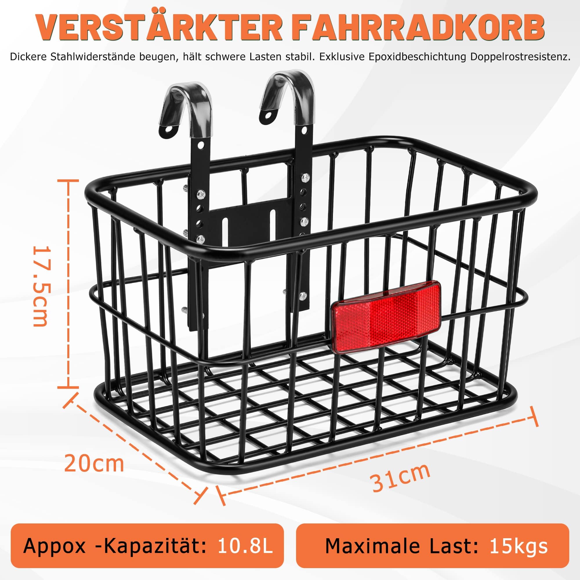 Endlich mehr Stauraum für dein Fahrrad! Dieser stabile Korb macht dich zum Transport-Profi. Ob Einkäufe, Arbeitsunterlagen oder Picknick-Ausrüstung - alles findet Platz in dem großzügigen 31 x 20 cm Korb. Der 6-mm-Stahlrahmen verbiegt sich nicht so schnell und die Epoxid-Beschichtung schützt vor Rost. Das absolute Highlight: Die doppellagige Handtasche! Sie ist nicht nur gut gepolstert, sondern lässt sich auch blitzschnell herausnehmen. Perfekt, wenn du schnell vom Fahrrad in den Supermarkt wechselst. Montiert ist der Korb in wenigen Minuten - die Halterungen passen an die meisten Fahrradtypen. Maße: 31 x 20 x 17,5 cm • Material: Stahl mit Epoxid-Beschichtung • Besonderheiten: Herausnehmbare Innentasche • Kompatibilität: Für Falträder, Mountainbikes, E-Bikes, Citybikes • Lieferumfang: Korb, Tasche, Montagematerial, Anleitung • Farbe: Schwarz • Gewicht: Sehr stabil • Ideal für: Pendler, Einkäufer, Fahrrad-Touren