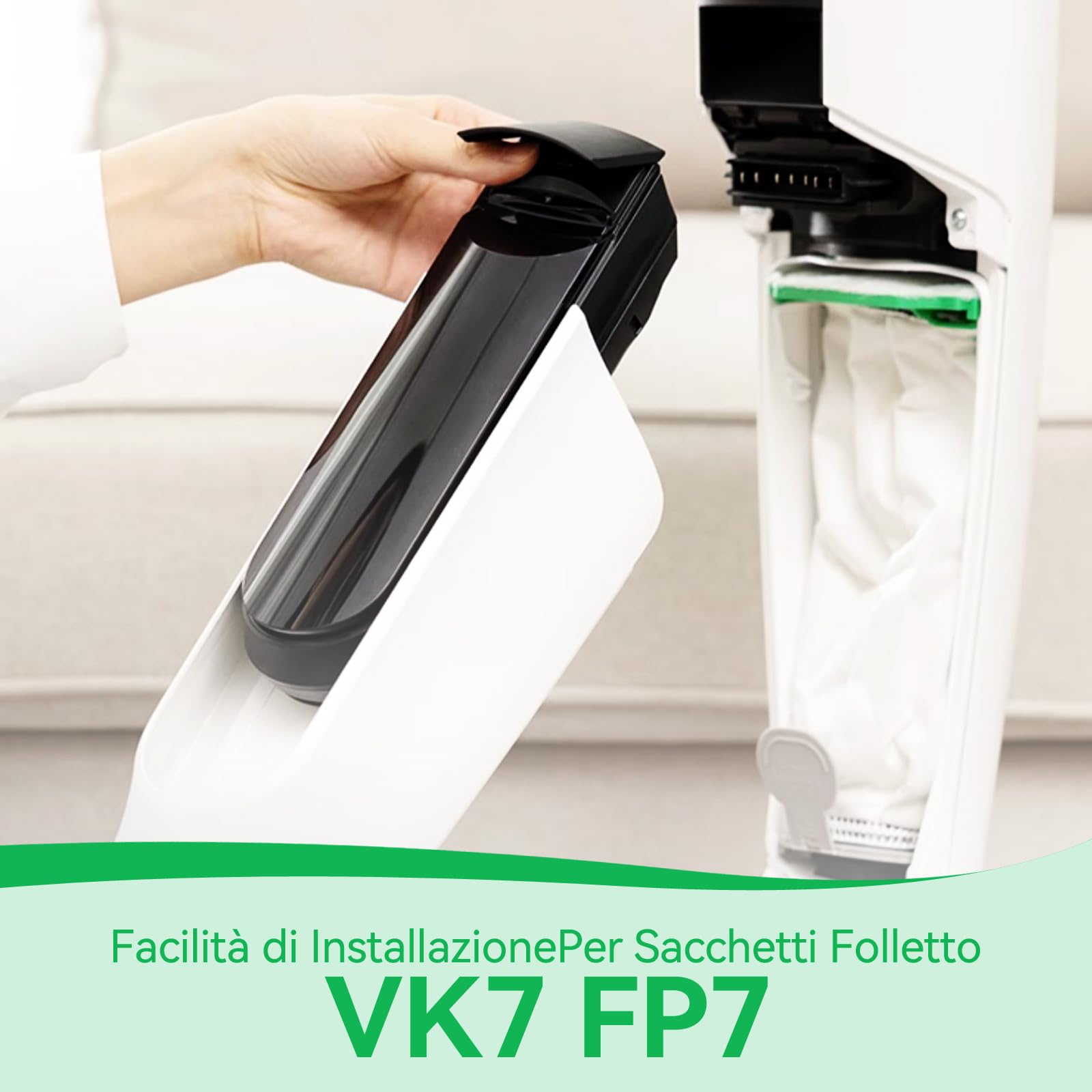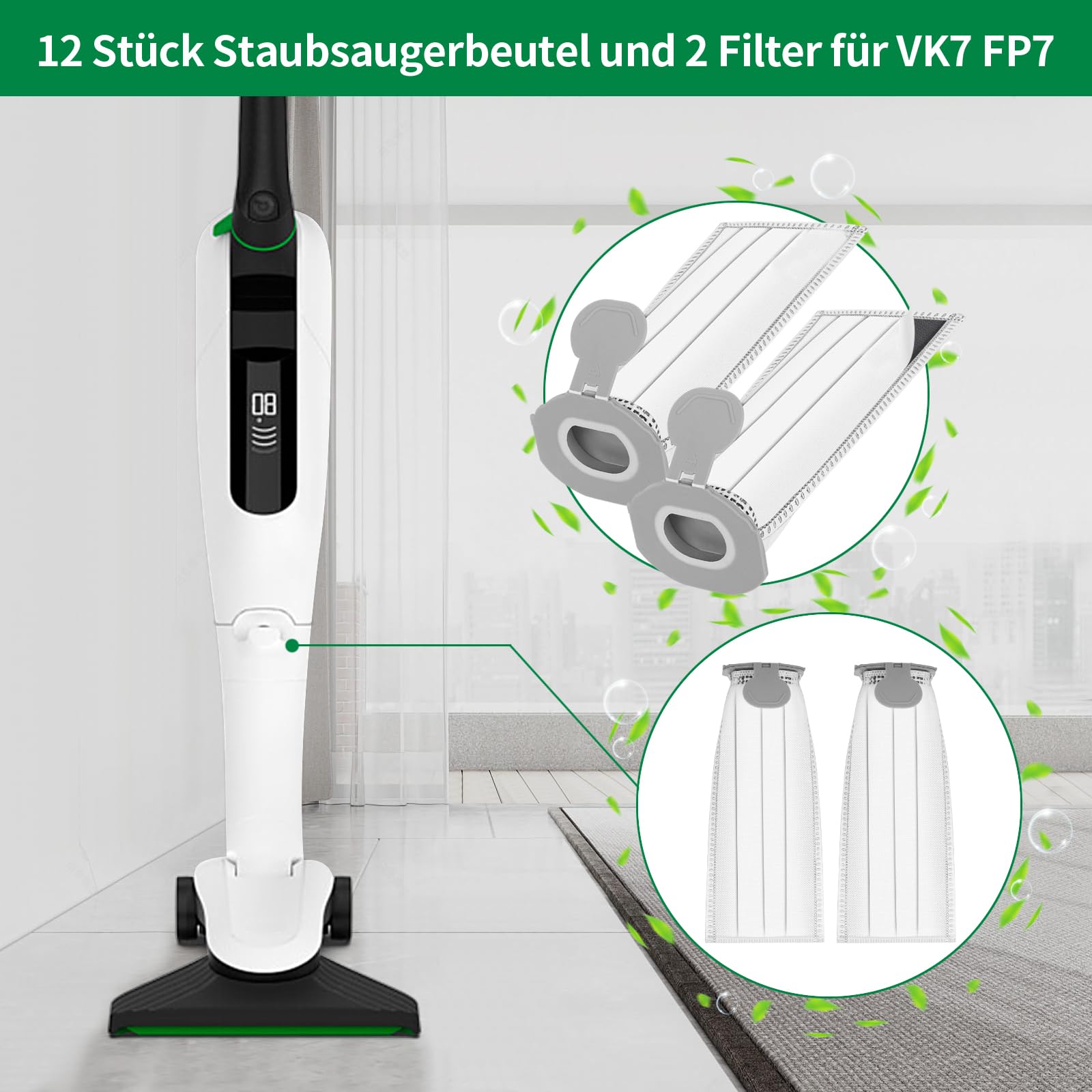 Hey, diese Staubsaugerbeutel für deinen Vorwerk Kobold sind einfach genial! Mit 10 Stück im Pack bist du erstmal für lange Zeit versorgt und musst dir keine Sorgen machen, dass dir zwischendurch die Beutel ausgehen. Die Qualität ist top und sie passen perfekt - genau wie die Originalteile!\n\nWas die Beutel so besonders macht:\n• 3-fach Filterung: Heißluftbaumwolle, Meltblown-Gewebe, Aktivkohle\n• Fängt 99,97% aller Mikropartikel - super für Allergiker!\n• Maße: 24,5 x 11,8 x 6,8 cm - passgenau für VK7/FP7\n• Mit praktischem Klappverschluss - kein Staubwirbel beim Wechseln\n• 10er Pack - reicht für bis zu 3 Jahre!\n\nEinfach den alten Beutel rausnehmen, neuen rein - und schon saugt dein Kobold wieder wie am ersten Tag! Die Beutel halten selbst feinste Staubpartikel zuverlässig zurück und die Aktivkohleschicht sorgt dafür, dass unangenehme Gerüche neutralisiert werden. Perfekt für Hausstauballergiker und alle, die Wert auf Hygiene und volle Saugleistung legen. Einfach ein No-Brainer für jeden Vorwerk-Besitzer!