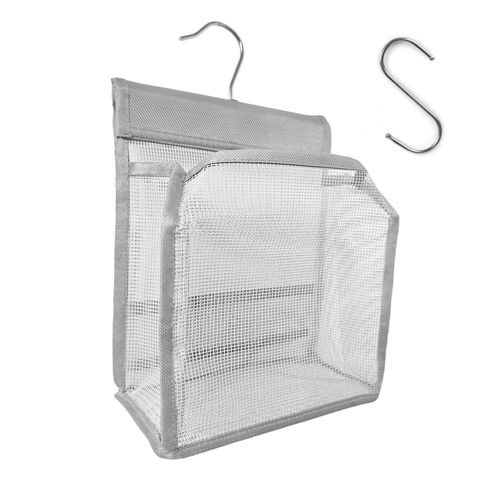 Endlich Ordnung für deine Wäscheklammern! Dieser praktische Beutel aus robustem PVC (24x19x9cm) hat ein großes, atmungsaktives Netz - so bleiben die Klammern trocken und geruchsfrei. Mit 360° drehbarem Haken für einfachen Zugriff an Wäscheleine, Türgriff oder Garderobe. Nicht nur für Wäscheklammern, sondern auch super für Kosmetik, Toilettenartikel, Socken oder Schlüssel. Perfekt für Waschraum, Badezimmer, Balkon, Küche oder sogar im Auto. Leicht zu reinigen und platzsparend. Mach deinen Haushalt organisiert!