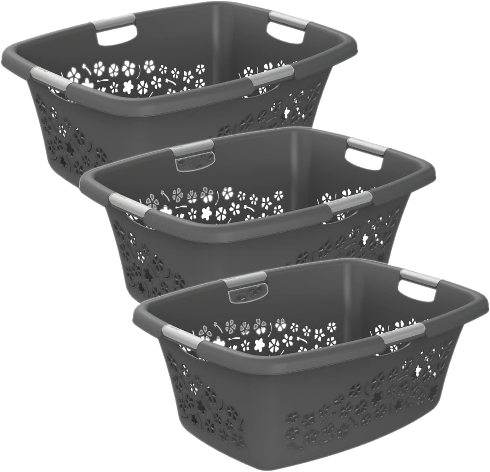 Ordnung für deine Wäsche! Dieser Rotho Flowers Wäschekorb in schickem Anthrazit ist nicht nur praktisch, sondern sieht auch noch toll aus. Mit 25 Liter Fassungsvermögen und den Maßen 50,5 x 38,3 x 21,8 cm bietet er reichlich Platz. Die dekorativen Blumen-Durchbrüche sorgen für Belüftung und sehen hübsch aus. Zwei integrierte Griffe machen das Tragen auch bei voller Beladung einfach. Aus BPA-freiem Kunststoff (PP) - sicher und langlebig. Perfekt für Bad, Schlafzimmer oder Wohnbereich. Ein Wäschekorb, der sich sehen lassen kann!
