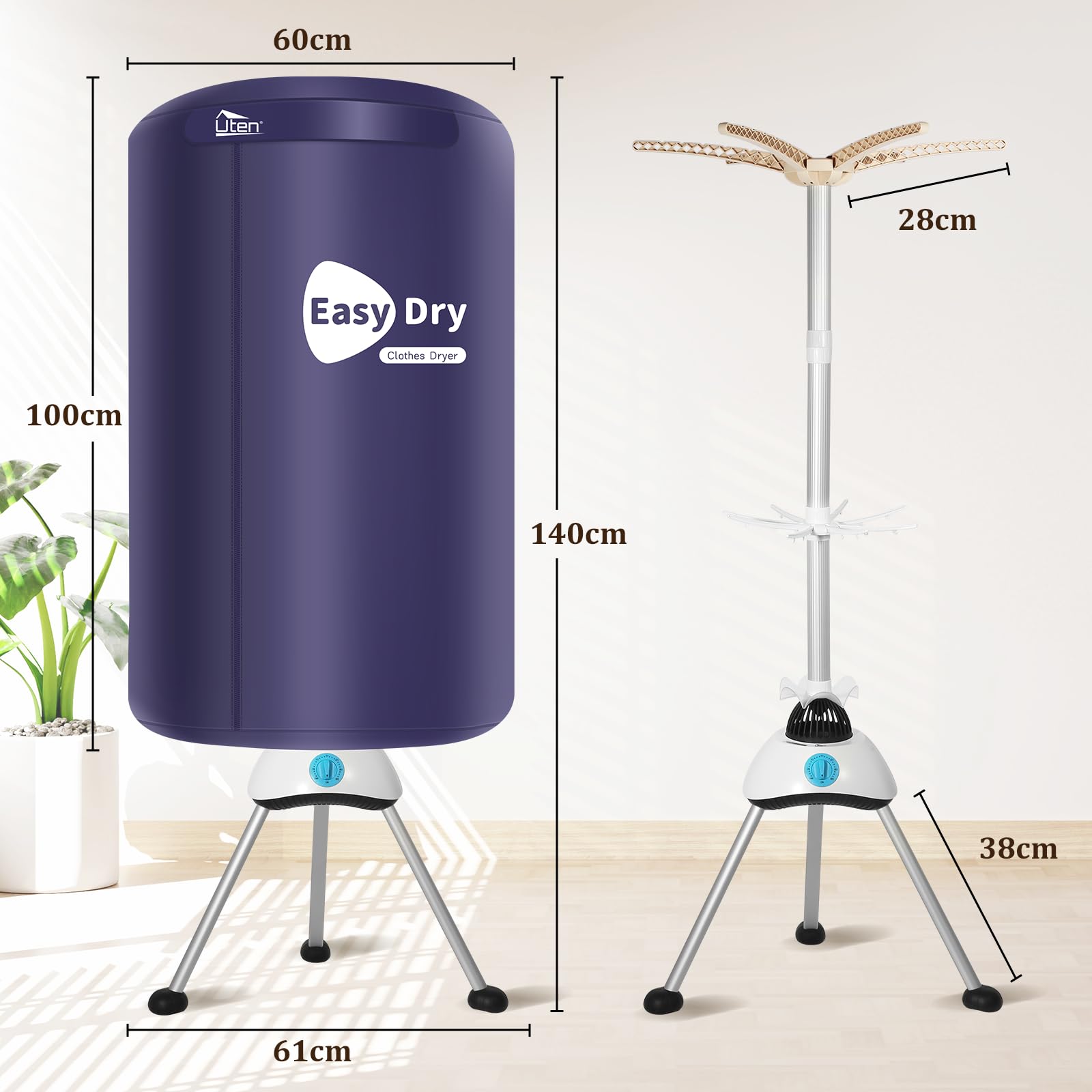 • TESUGN Elektrischer Wäschetrockner Klappbar - 1200W Mit Timer & Fernbedienung