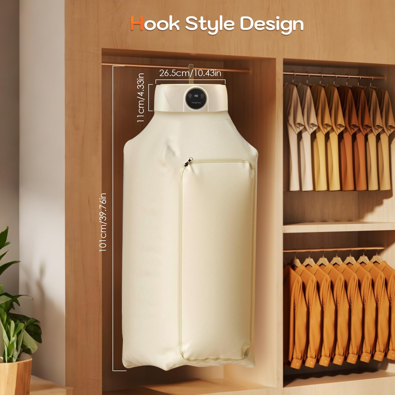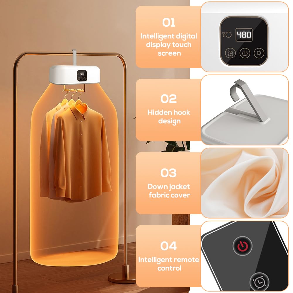 Wow, dieser Mini-Wäschetrockner ist echt praktisch! Perfekt für alle, die wenig Platz haben oder oft unterwegs sind. Mit 600W Leistung trocknet er deine Wäsche richtig schnell - viel schneller als an der Luft! Das Beste: Er ist komplett faltbar und nimmt kaum Platz weg. Du kannst ihn einfach im Schrank oder unter dem Bett verstauen. Mit der Fernbedienung steuerst du ihn bequem von der Couch aus - Timer von 1-8 Stunden, zwei Windstärken und sogar UV-Sterilisation gegen Bakterien! Einfach den Haken irgendwo aufhängen, die Haube anbringen und los geht's. Ob im Studentenwohnheim, auf Reisen oder im Campingurlaub - nie wieder nasse Klamotten! Die 360° Heißluftzirkulation macht deine Wäsche richtig fluffig weich. Ein echter Lebensretter bei schlechtem Wetter!