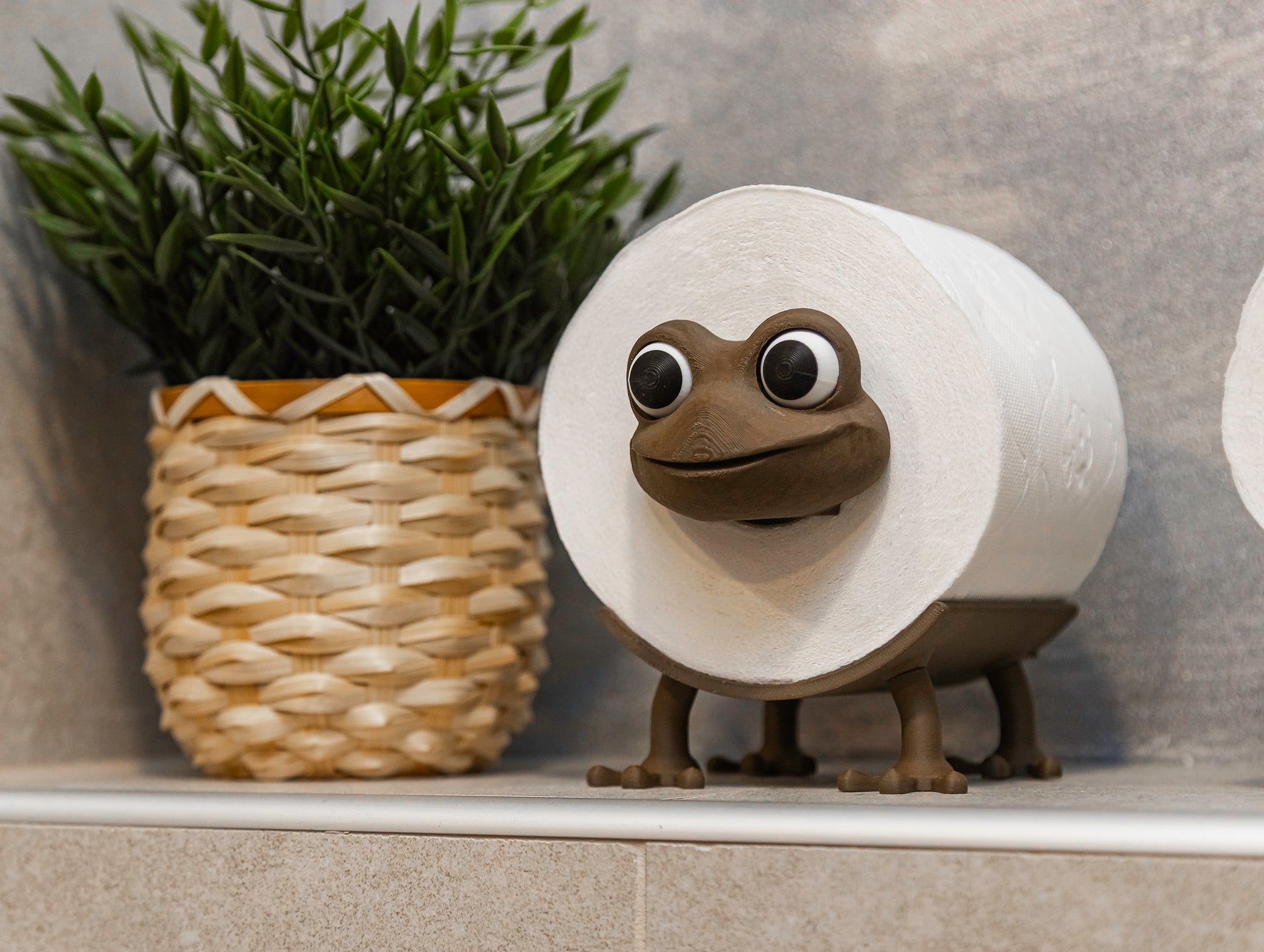 Dieser süße Frosch-Toilettenpapierhalter bringt Spaß in dein Badezimmer! Der 3D-gedruckte Frosch hat einen cleveren Flip-Bauch - einfach öffnen, Toilettenpapier einlegen und schon hält der Frosch dein Papier fest. Mit 20x21x19 cm Größe und 480 g Gewicht ist er stabil und steht sicher auf jedem Waschtisch oder Regal. Aus PP-Material gefertigt, ist er einfach abzuwischen und hält lange. Das lustige Design mit dem Mini-Popo und dem verspielten Look macht nicht nur Kindern Freude, sondern bringt auch Erwachsene zum Schmunzeln. Perfekt für Bad, Gäste-WC oder sogar die Küche - überall, wo du Toilettenpapier griffbereit haben willst. Einfach hinstellen oder mit dem mitgelieferten Kleber befestigen - schon hast du eine Deko, die praktisch UND witzig ist!