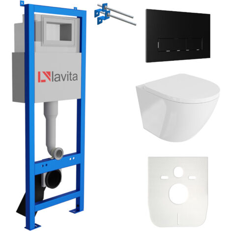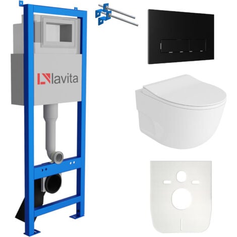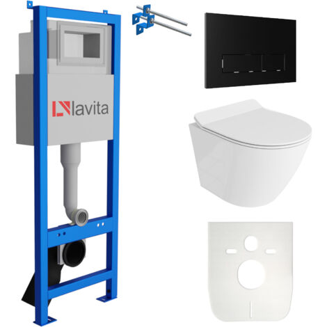 Alles dabei für dein neues Bad! Dieses Lavita Komplettset macht die Installation super einfach - du bekommst das Vorwandelement LAV 101 (40cm Breite), das wandhängende Tiefspül-WC GALVE in strahlendem Weiß, die verchromte Bedienplatte LAV 200.4.2 und einen komfortablen WC-Sitz mit Absenkautomatik. Perfekt für kleine Bäder, denn das schlanke Design spart richtig Platz. Die spülrandlose Technologie sorgt für maximale Hygiene - keine Bakteriennester mehr! Der Stahlrahmen ist super stabil und mit verstellbaren Füßen (bis 160 mm) passt sich alles perfekt an. Montage ist echt einfach - alles Notwendige liegt bei. Das WC hat eine effiziente Spülung die Wasser spart, aber trotzdem alles blitzsauber macht. Modern, hygienisch und platzsparend - was will man mehr?