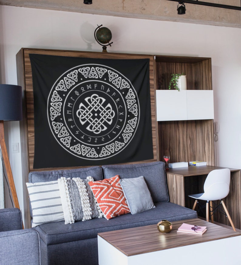 Tauch ein in die Welt der Wikinger! Dieser beeindruckende Wandteppich mit Wolf-Totem und mystischen Runen bringt nordische Stärke und Weisheit in dein Zuhause. Maße: 118x70 inch (ca. 300x178 cm) - ein echter Hingucker!\n\nAus weichem Polyester mit modernem Digitaldruck für lebendige, langlebige Farben. Leicht zu reinigen - einfach in kaltem Wasser waschen und natürlich trocknen lassen.\n\nMit 2 spurlosen Haken und Halterungen für einfaches Aufhängen. Perfekt für Wohnzimmer, Schlafzimmer, über dem Sofa oder im Studentenwohnheim. Auch als Tischdecke, Picknickdecke oder Fotokulisse nutzbar.\n\nDas schwarz-weiße Design mit Wolf-Motiv und Runen verleiht jedem Raum eine geheimnisvolle, kraftvolle Atmosphäre. Für alle Fans nordischer Mythologie und kraftvoller Symbolik!