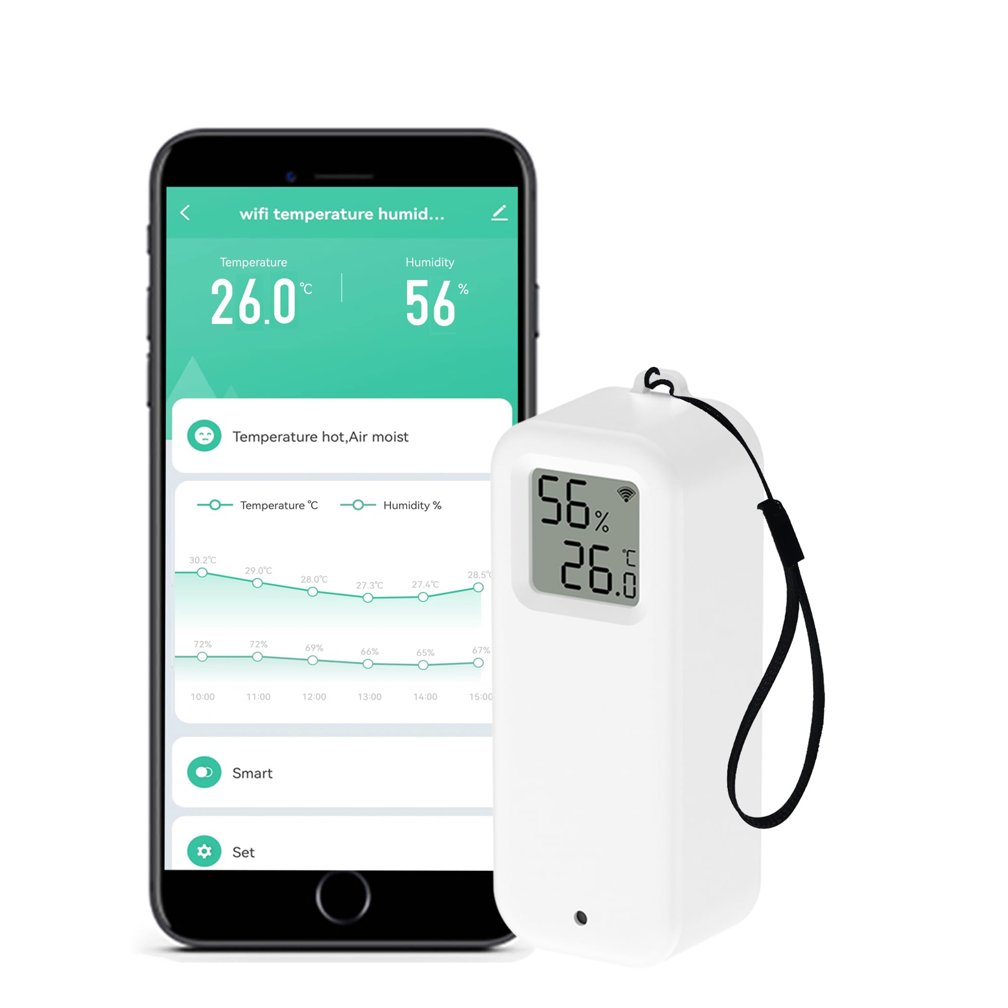 Immer perfektes Raumklima! Dieser smarte Temperatur- und Feuchtigkeitssensor überwacht deine Räume rund um die Uhr. Mit IP65 Wasserschutz kannst du ihn drinnen und draußen verwenden - selbst bei Regen kein Problem! Die Smart Life/Tuya App warnt dich, wenn Temperatur oder Luftfeuchtigkeit vom Idealwert abweichen. Noch smarter: Verbinde ihn mit deiner Heizung, Klimaanlage oder Luftbefeuchter für automatische Regelung! 'Alexa, wie ist die Temperatur?' - Sprachsteuerung inklusive. Mit Magnet, Aufhängeseil und 3M-Kleber für flexible Montage. Batteriebetrieben und stromsparend - die 2 AAA-Batterien sind sogar im Lieferumfang enthalten. Endlich volle Kontrolle über dein Raumklima!