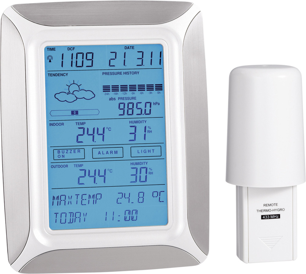 Immer bestens informiert! Diese WLAN Wetterstation von techno line zeigt dir alles auf'm Display und in der Smart Life App: Uhrzeit, Kalender, Innen-/Außentemperatur, Wettervorhersage für 4 Tage, Luftdruck, PM2.5, UV-Index und mehr. Mit Weckalarm, automatischer Helligkeitsanpassung und Speicherung der Einstellungen. Kann auf'm Tisch stehen oder an der Wand. Sensor misst von -10°C bis 60°C. Perfekt für Zuhause – so behältst du Wetter und Klima im Blick!