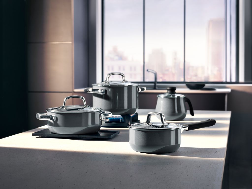 Kochen wie ein Profi mit diesem hochwertigen WMF Topfset! 4 Teile: 1,3l Stielkasserole, 2,4l Bratentopf, 3,7l und 6,4l Fleischtöpfe - alle mit Glasdeckel. Aus der innovativen Fusiontec Mineral Legierung: kratzfest, nickelfrei und für alle Herdarten geeignet. Die Hohlgriffe werden nicht heiß, breiter Schüttrand für tropffreies Ausgießen. Spülmaschinenfest, hitzebeständig bis 250°C. Hergestellt in Deutschland mit traditioneller Handwerkskunst. Für perfekte Kochresultate jeden Tag. Ein Kochgeschirr fürs Leben!