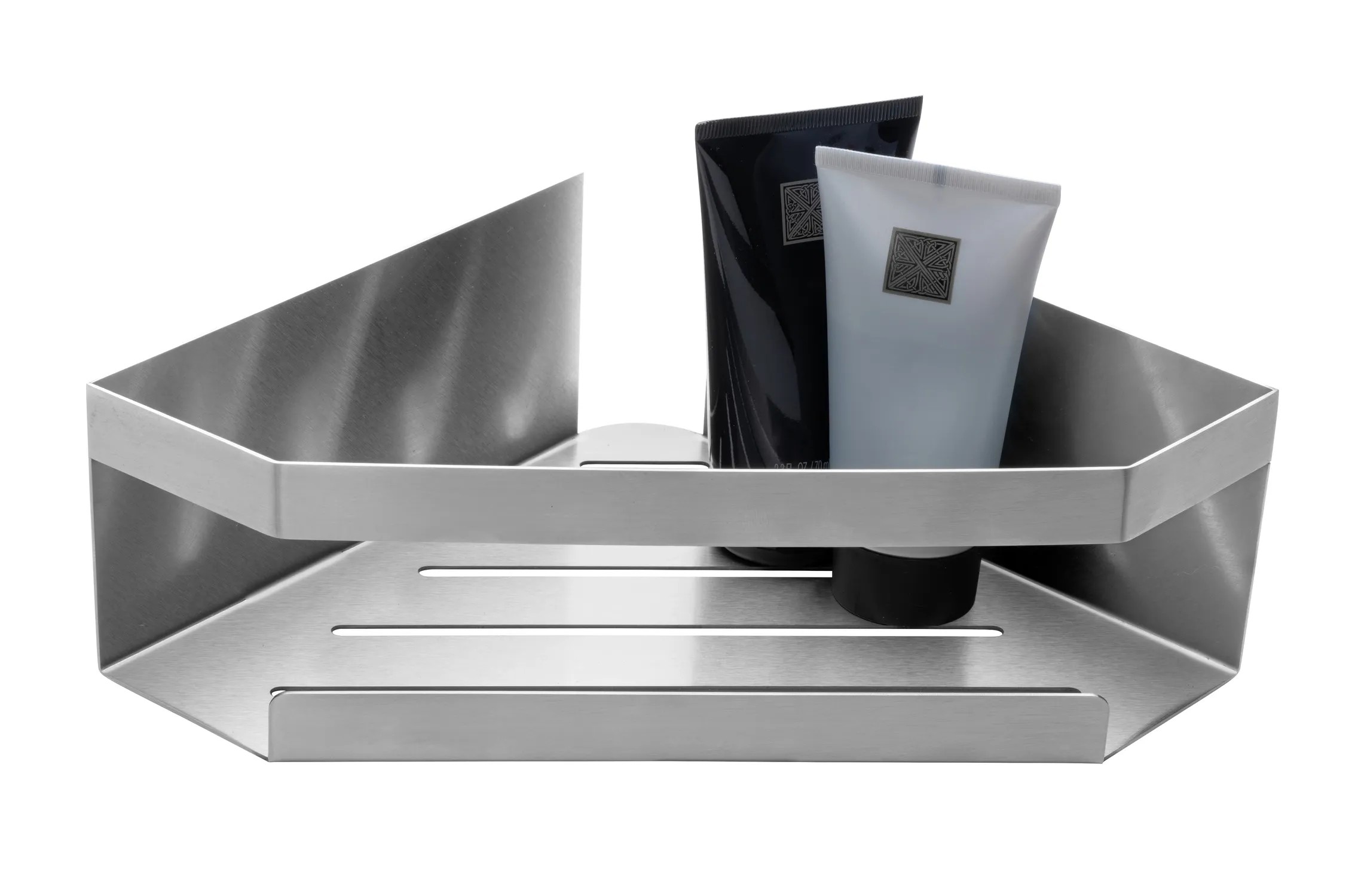 Endlich mehr Ordnung in deiner Dusche! Die SCHÖNER WOHNEN Eckablage Meleto ist die perfekte Lösung für Shampoo, Duschgel und Co. Das praktische Regal aus rostfreiem Edelstahl bringt Stil und Funktionalität in dein Badezimmer - ganz ohne Bohren! Die Montage ist super einfach: Mit der Klebepad-Technologie einfach die Schutzfolie abziehen, die Ablage fest andrücken und 24 Stunden warten - schon ist sie einsatzbereit. Die matte Oberfläche sieht nicht nur edel aus, sondern ist auch pflegeleicht. Durch die integrierten Schlitze kann das Wasser einfach ablaufen, sodass keine Pfützen entstehen. Maße: 28,5 x 8 x 18 cm - genau richtig für alle Duschutensilien. Perfekt für Mietwohnungen oder wenn du keine Löcher in die Fliesen machen willst. Die Ablage ist rückstandslos entfernbar und hinterlässt keine Spuren. Das stabile Edelstahl-Gestell trägt problemlos mehrere Flaschen und Duschartikel. So hast du alles griffbereit und deine Dusche bleibt aufgeräumt. Die SCHÖNER WOHNEN Kollektion steht für Qualität und gutes Design - diese Eckablage macht da keine Ausnahme. Sie fügt sich perfekt in jedes Badezimmer ein und sorgt für mehr Komfort beim Duschen. Nie wieder herumkramen - alles ist ordentlich verstaut und immer zur Hand!