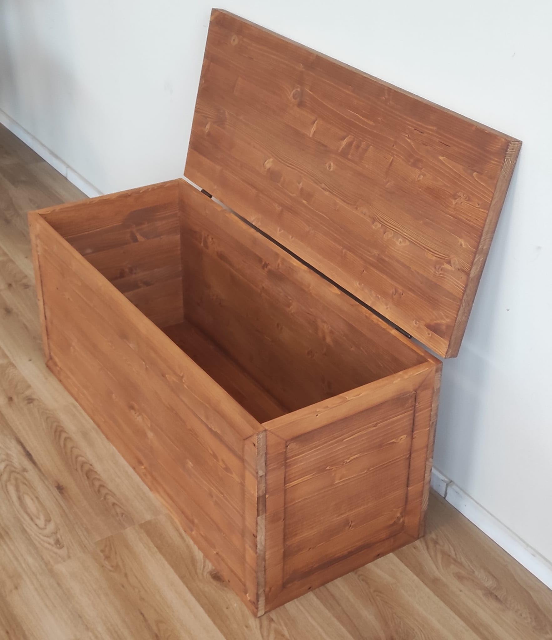 Stylish und praktisch zugleich! Diese Truhenbank aus massivem Tannenholz ist beides: gemütliche Sitzgelegenheit und praktischer Stauraum. Maße: 150x40x45cm (LxBxH), Innenmaße 142x32x37cm. Dicke 2cm Holzstärke mit 15mm Innenverstärkung - hält bis 300kg aus! In dunkler Walnussfarbe imprägniert, andere Farbtöne auf Anfrage. Wird als Bausatz geliefert, Made in Italy. Perfekt für Flur, Schlafzimmer oder als Fußbank. Sieht nicht nur gut aus, sondern ist auch super praktisch!