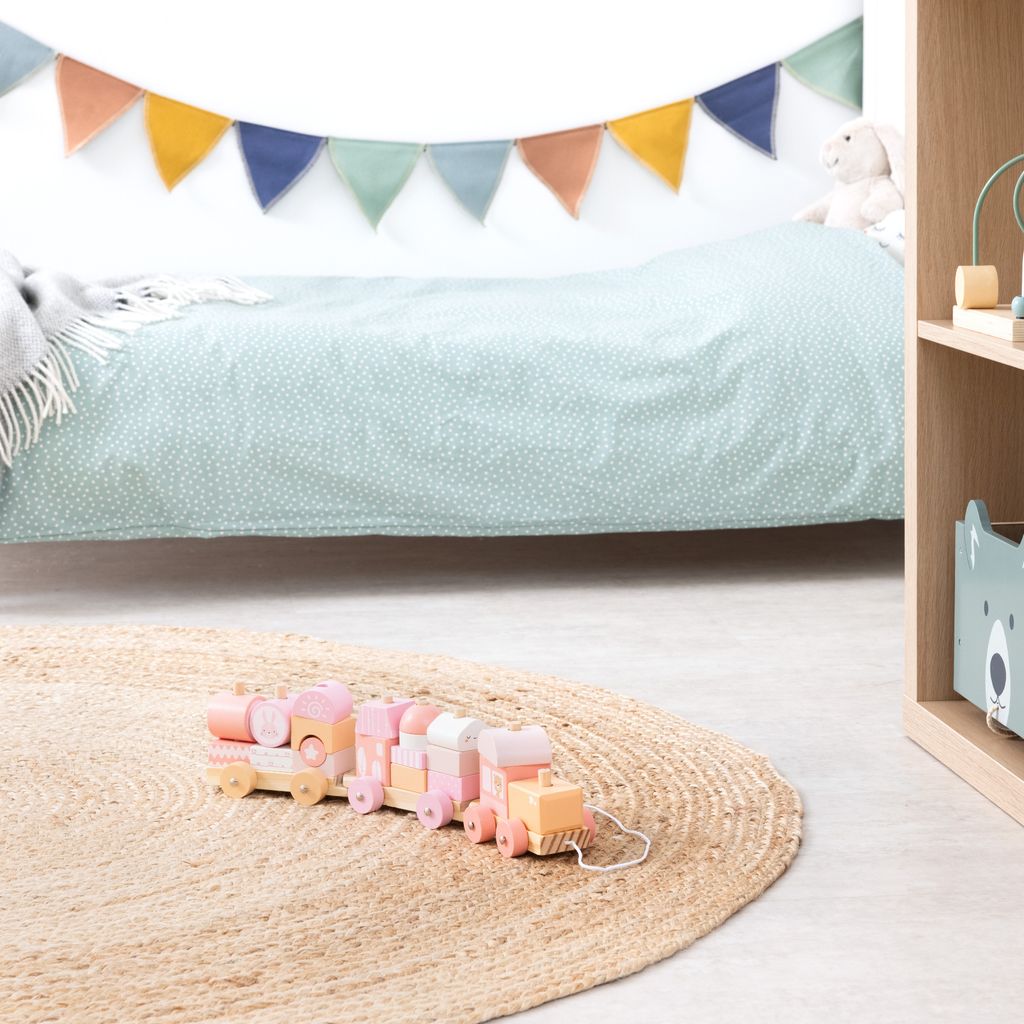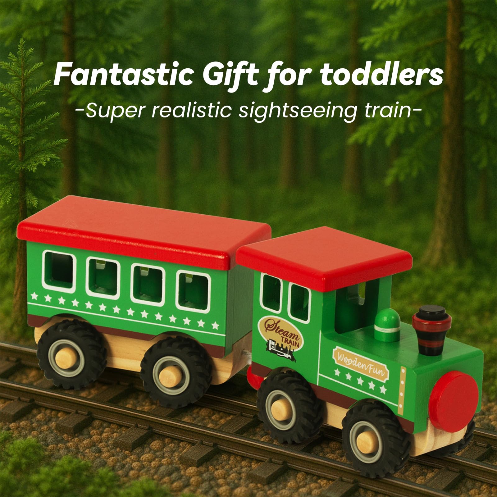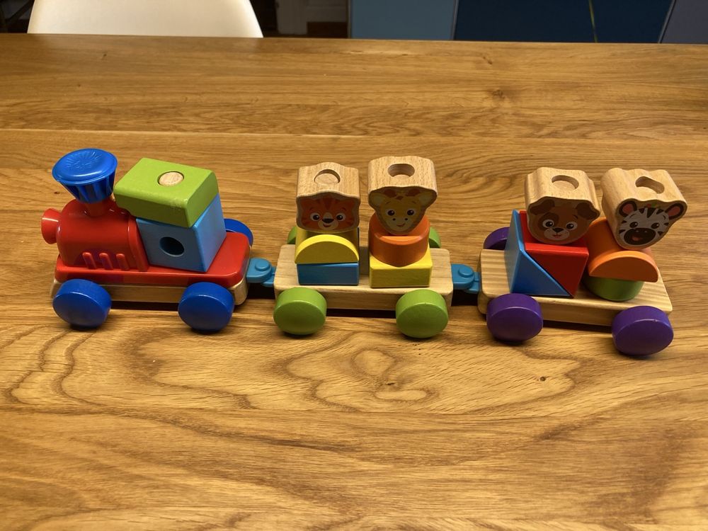 Suchst du nach nem richtig süßen Spielzeug für dein Kleines? Dieser grüne Holzzug von WOODENFUN ist einfach nur niedlich! Mit seinen zwei Waggons und dem Retro-Design im rot-grünen Farbschema zieht er sofort alle Blicke auf sich. Das Beste: Er ist aus 100% natürlichem Holz gemacht und mit ungiftiger Wasserfarbe lackiert. Alles handpoliert und superglatt - keine scharfen Kanten, an denen sich dein Kind verletzen könnte. Perfekt für kleine Hände ab 18 Monaten. Die Kids lernen dabei spielerisch, wie man die Waggons zusammensteckt und entwickeln ihre motorischen Fähigkeiten. Und weil's so robust ist, hält der Zug auch wildeste Spielabenteuer aus. Ob als Geburtstagsgeschenk, zu Weihnachten oder einfach so - dieses Spielzeug wird dein Kind lange begleiten. Die Maße von 24,6x9,5x7cm sind genau richtig für kleine Kinderhände. Einfach zeitloses Spielzeug, das nicht nur Spaß macht, sondern auch pädagogisch wertvoll ist!