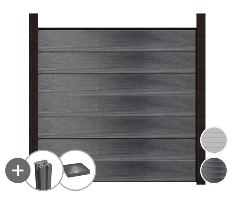 Mehr Privatsphäre auf der Terrasse? Mit diesem WPC Sichtschutzzaun im modernen dark grey kriegst du sie! Der Komplett-Set enthält 2 Zäune und 3 Pfosten - alles was du für eine komplette Seite brauchst. Mit 180x180cm Abmessungen bietet der perfekten Sichtschutz ohne beengend zu wirken. Das coole Sandstrahl-Motiv in der Verglasung gibt dem Zaun eine stylische Note. Aus WPC/BPC Material - das ist super pflegeleicht, musst du nicht streichen oder ölen. Die Pfosten (10x10cm, 240cm lang) betonierst du einfach ein, die Kappen sind schon dabei. Ideal für Terrasse, Garten oder als Grundstücksbegrenzung. Sieht total hochwertig aus und hält ewig. Einfach aufbauen und jahrelang Freude daran haben - ohne lästige Pflegearbeiten. So wird dein Garten zur privaten Wohlfühl-Oase!