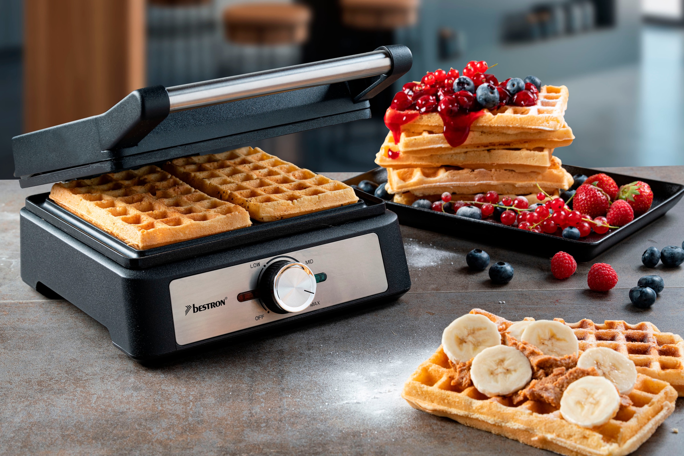 Mmmmh, frisch duftende Waffeln! Mit diesem 1200W starken Waffeleisen von FOHERE machst du bis zu 4 dicke belgische Waffeln gleichzeitig - in nur 5-8 Minuten fertig! Perfekt für Familienfrühstück oder wenn mal Besuch kommt. Der verstellbare Bräunungsregler mit 5 Stufen lässt dich entscheiden, ob du's lieber weich und fluffig oder knusprig und goldbraun magst. Die extra tiefen, antihaftbeschichteten Platten sorgen dafür, dass die Waffeln perfekt gelingen und leicht zu reinigen sind. Der Cool-Touch-Griff schützt vor Verbrennungen und die rutschfesten Gummifüße geben sicheren Stand auf der Arbeitsplatte. In stylischem schwarzem Edelstahl-Design sieht das Teil nicht nur gut aus, sondern ist auch platzsparend zu verstauen. Einfach einschalten, Teig rein und schon bald genießt du leckere, selbstgemachte Waffeln - viel besser als jedes Café!