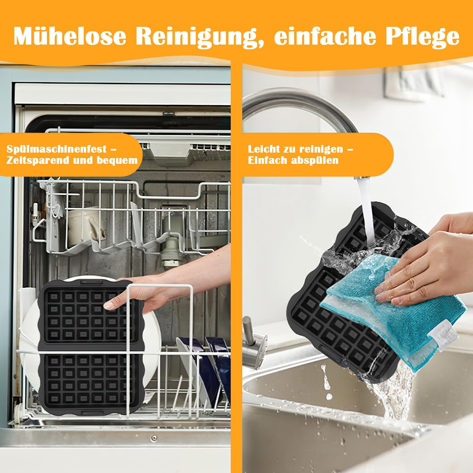 Boah, mit diesen Waffelformen für deine Ninja Heißluftfritteuse machst du richtig coole Waffeln! 2 Stück im Set, aus lebensmittelechtem Silikon, BPA-frei. Passt perfekt für Ninja AF300EU, AF400EU, AF451EU, SL400EU und AF500DE. Maße 21x14,5x2cm - ideal für belgische Waffeln. Hitzebeständig von -40°C bis 230°C, also absolut sicher. Dank Antihaft-Beschichtung gehen die Waffeln easy raus. Einfach Teig rein, in die Heißluftfritteuse und in wenigen Minuten hast du knusprige Waffeln! Auch super für Kekse, Pudding oder Schokolade. Spülmaschinenfest und platzsparend zu verstauen. Perfekt für Frühstück, Snacks oder wenn Besuch kommt!