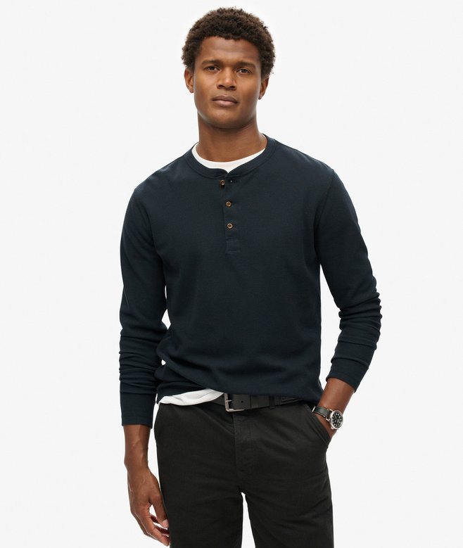 Suchst du mal was Anderes als ein langweiliges T-Shirt? Diese Henley Hemden mit coolem Waffelmuster sind genau das Richtige! Die langärmligen Shirts haben diesen lässigen Stehkragen und die typische Henley-Knopfleiste - sieht total stylisch aus, ist aber super bequem.