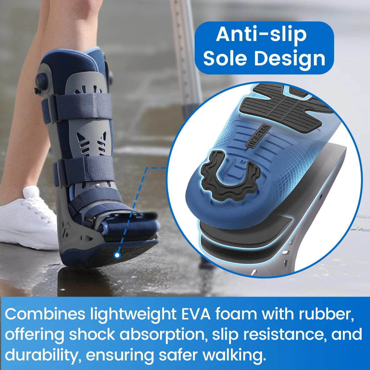 Professioneller Air Walker Gehstiefel für Fuß- und Knöchelverletzungen! Ideal bei Stressfrakturen, Verstauchungen, Achillessehnenrissen oder postoperativer Stabilisierung. Mit aufblasbarem Beutel für individuelle Kompression und optimale Positionierung. Verstärkte Kunststoffschale bietet starken Halt, Rocker-Bottom-Sohle ermöglicht natürliches Gehen. Luftkissen in der Innensohle reduziert Belastung, Aluminiumschiene passt sich dem Fuß an. In Größe M - vor dem Kauf bitte Größentabelle prüfen. Für sichere Rehabilitation und schnelle Genesung!