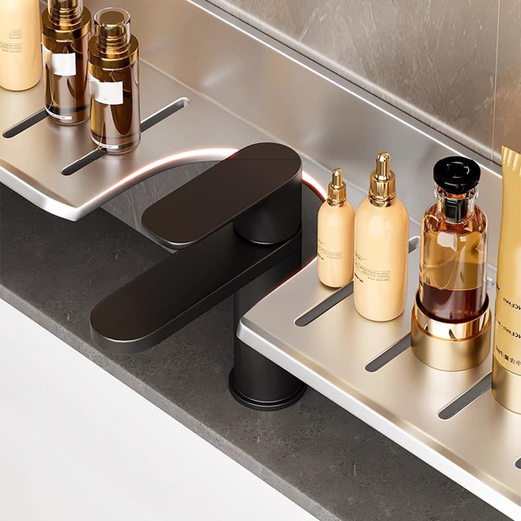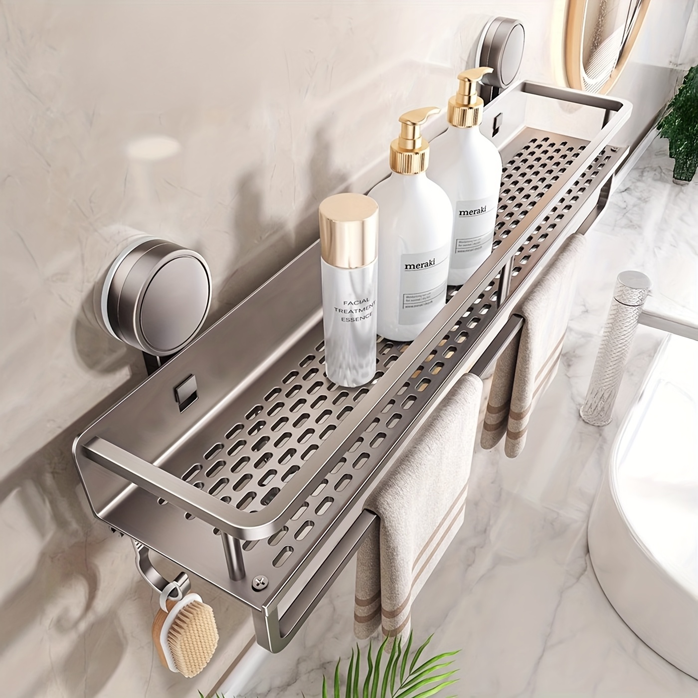 Mehr Stauraum im Bad - ganz ohne Bohren! Dieses schicke Regal aus Walnuss-Optik klebt einfach mit starken Saugnäpfen an der Wand oder Fliesen. Perfekt platzierbar über dem Wasserhahn, um Seife, Zahnbürsten oder Cremes griffbereit zu haben. Mit Abflussrille unten - da steht kein Wasser. Die Kanten sind abgerundet, keine Verletzungsgefahr! Passt zu modernen und skandinavischen Badezimmern. Einfach anbringen, bei Bedarf verschieben oder abnehmen. Endlich Ordnung im Bad!