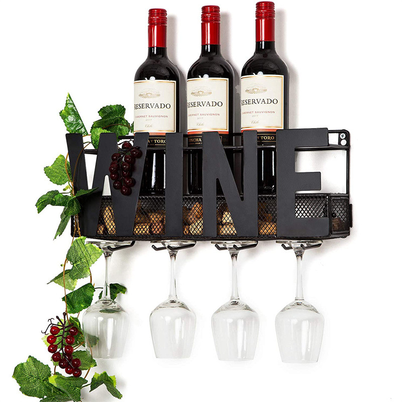 Wand Weinregal 200cm Schwarz - Metall Weinglas Halterung